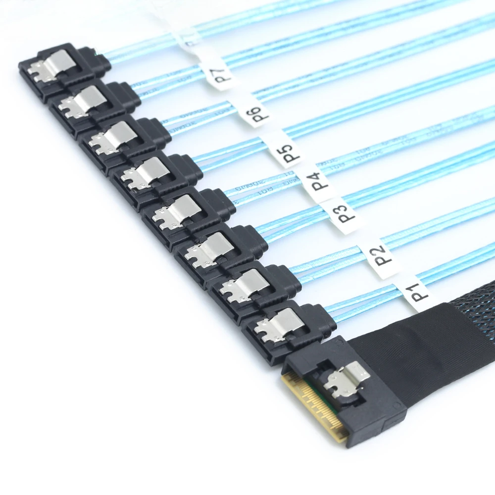Comprar Todo el envolvente inserción a prueba de balas Slim SAS 4,0 SFF-8654 8i 74 pines a 8X SATA 7 pines hembra recto con Cable de bloqueo