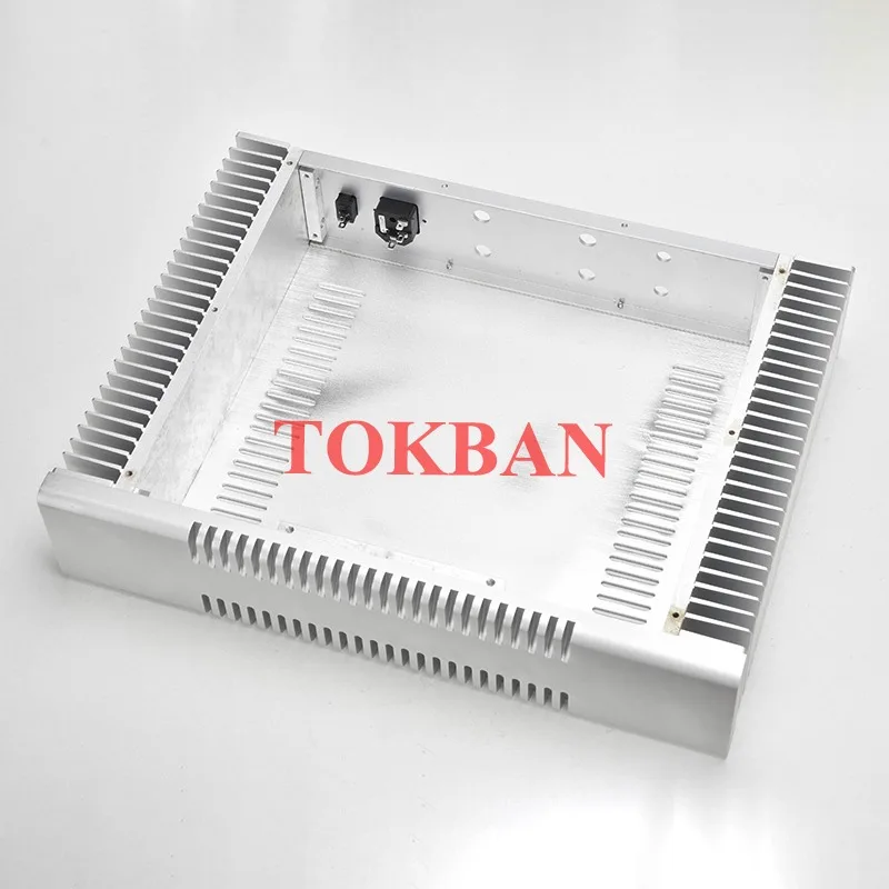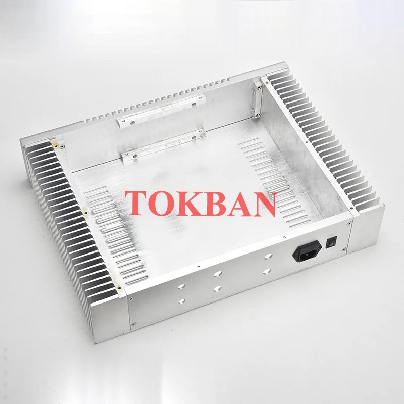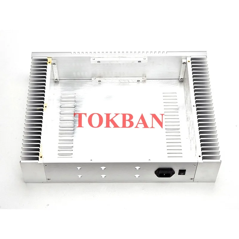 Parámetros: Material: aluminio Tamaño externo: 430*90*315 mm (ancho*alto*profundidad) Tamaño interno: 330*84*297 mm (ancho*alto*profundidad) Grosor del panel frontal: 8 mm Grosor del panel trasero: 3 mm. Grosor de la placa de cubierta: 3 mm. Tamaño del radiador: 300*50*90 mm, espesor de la placa base: 10 mm Adecuado para chasis amplificador Clase A o Clase AB.