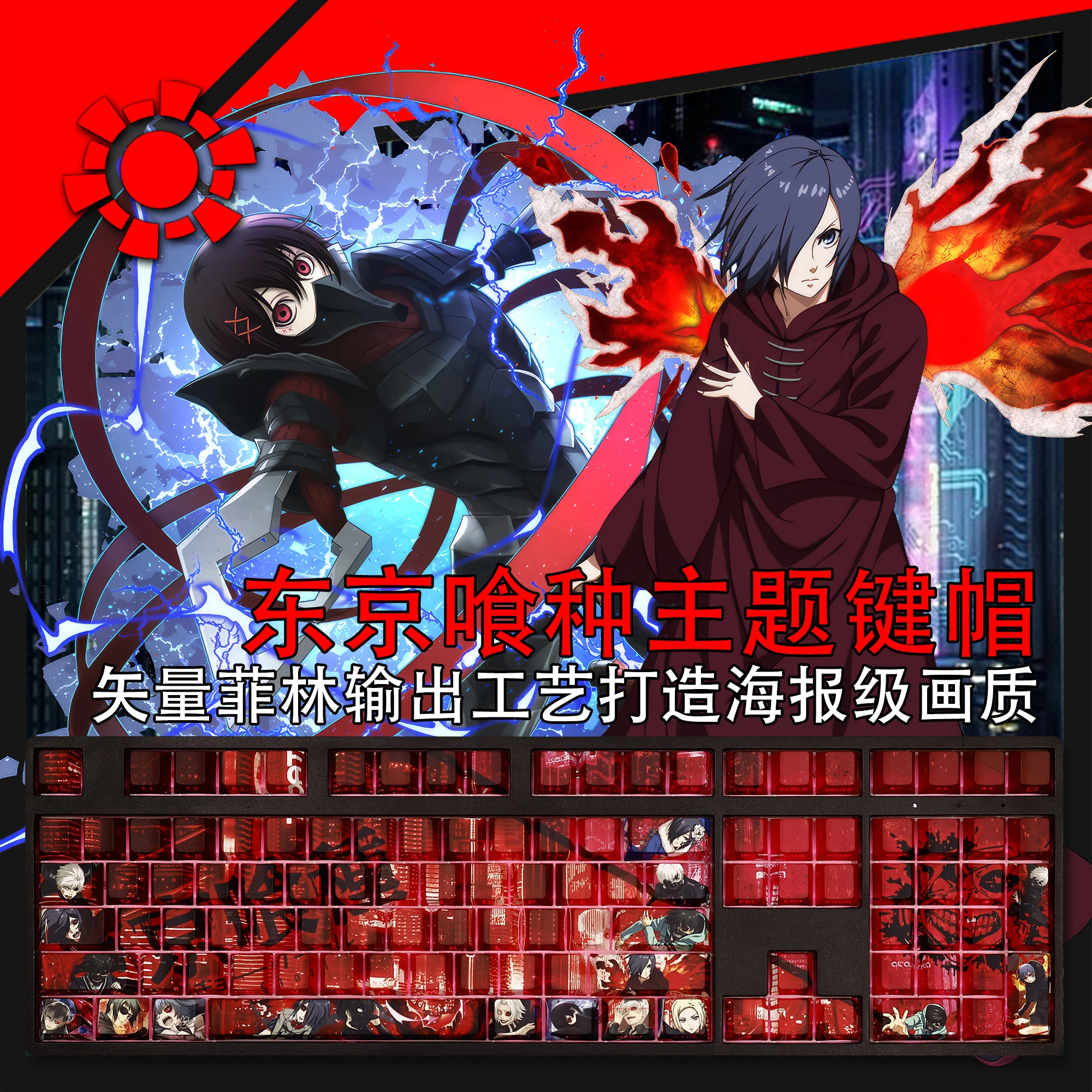 Tokyo Ghoul Kaneki Ken Keycap Cherry Profile 108 teclas PBT lado grabado translúcido Anime Keycaps para teclado mecánico para jugar