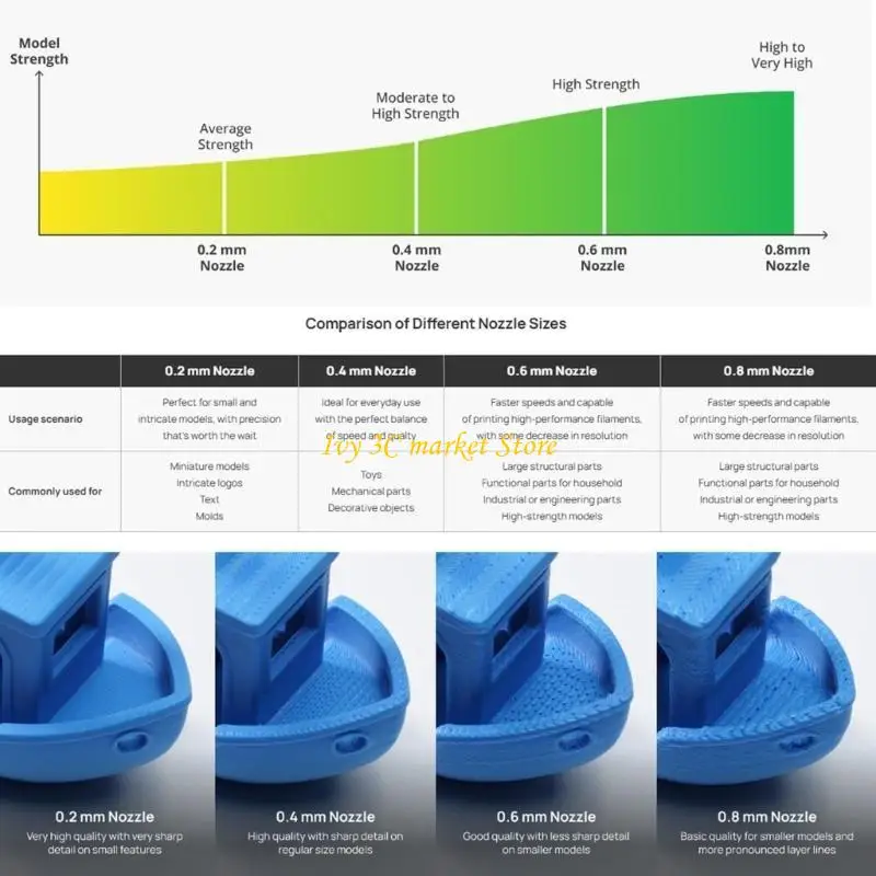 El paquete incluye:Boquilla de 0,2 mm 1 boquilla de 0,4 mm 1 boquilla de 0,6 mm 1 boquilla de 0,8 mm 1