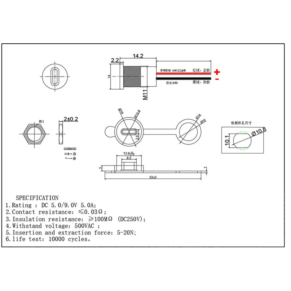 10 Uds 5A toma de carga de alta corriente con tuerca M11 placa de bloqueo a presión USB C TYPE-C hembra tipo C conector hembra impermeable Jack