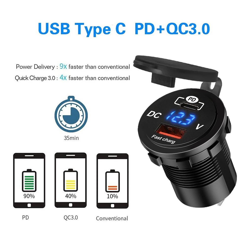 1 cargador de coche QC 3.0 USB tipo C PD.