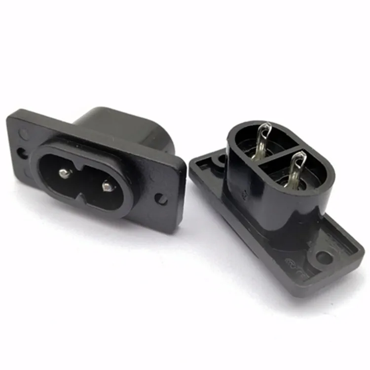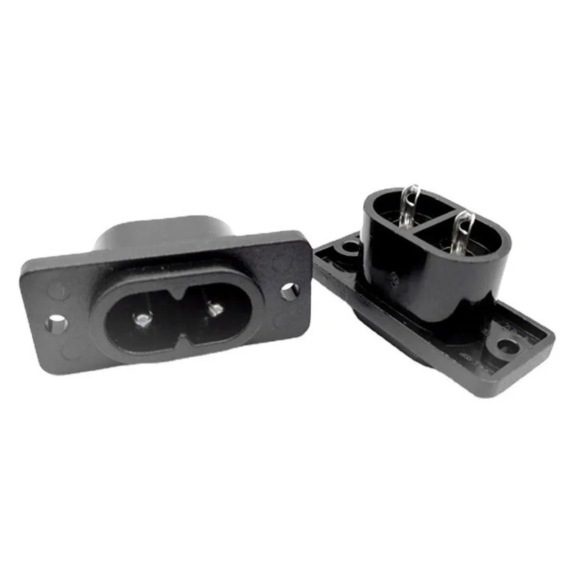 10 unids/lote toma de corriente alterna, IEC 320 C8 macho Firgure 8 adaptador de enchufe negro de protección contra sobrecarga toma de entrada AC-006