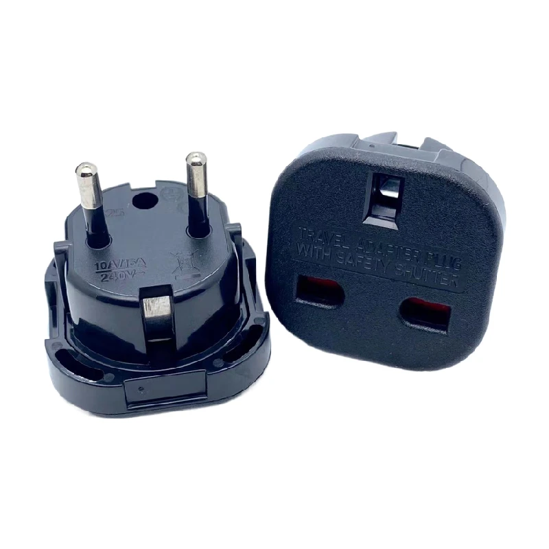 Función del producto: convierte los tres pines del enchufe del Reino Unido en pin redondo doble europeo (alemán/francés).