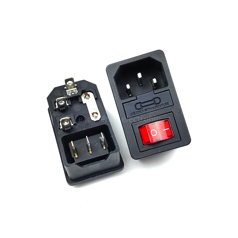 Comprar Toma de corriente CA con tarjeta de fusible de luz, interruptor basculante 3 en 1, 3 pines, entrada IEC320 C14, 10A, 250VAC, conector macho