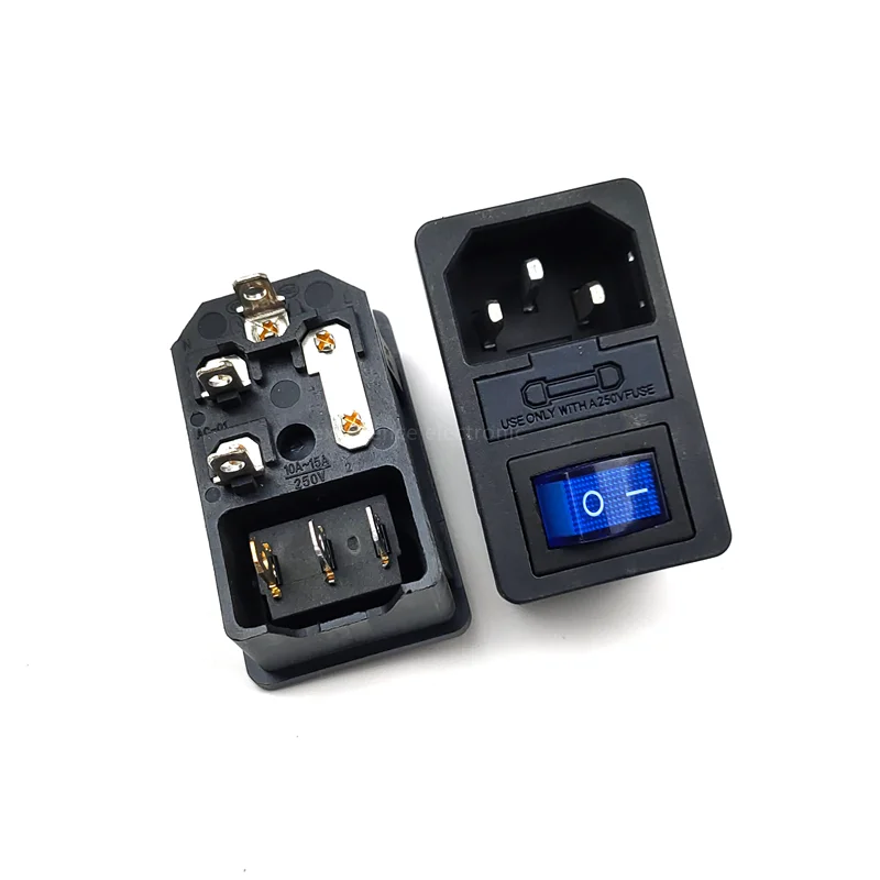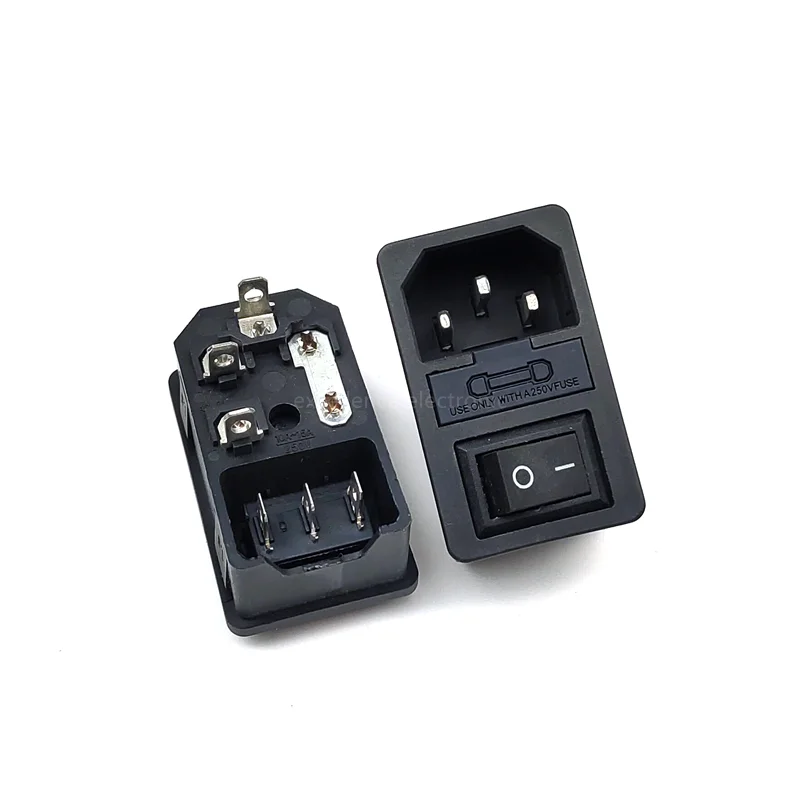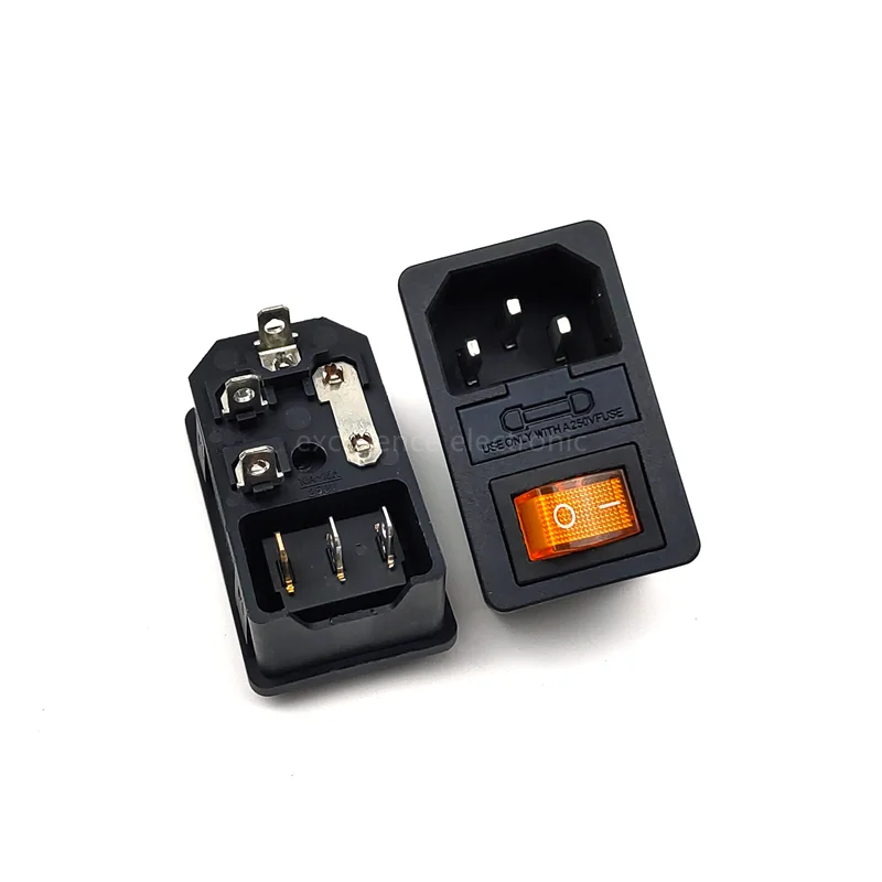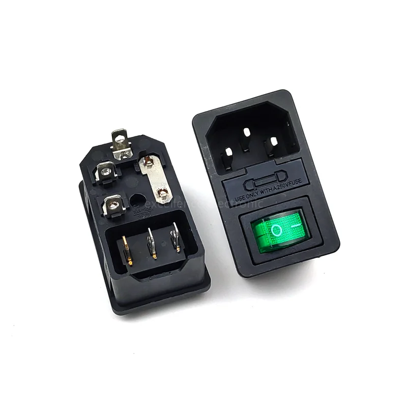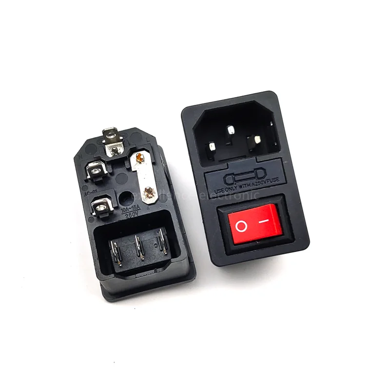 Comprar Toma de corriente CA con tarjeta de fusible de luz, interruptor basculante 3 en 1, 3 pines, entrada IEC320 C14, 10A, 250VAC, conector macho