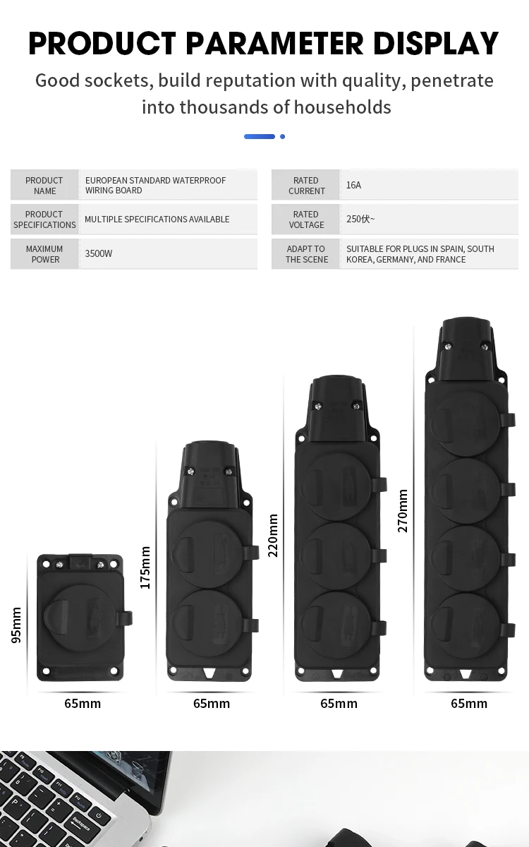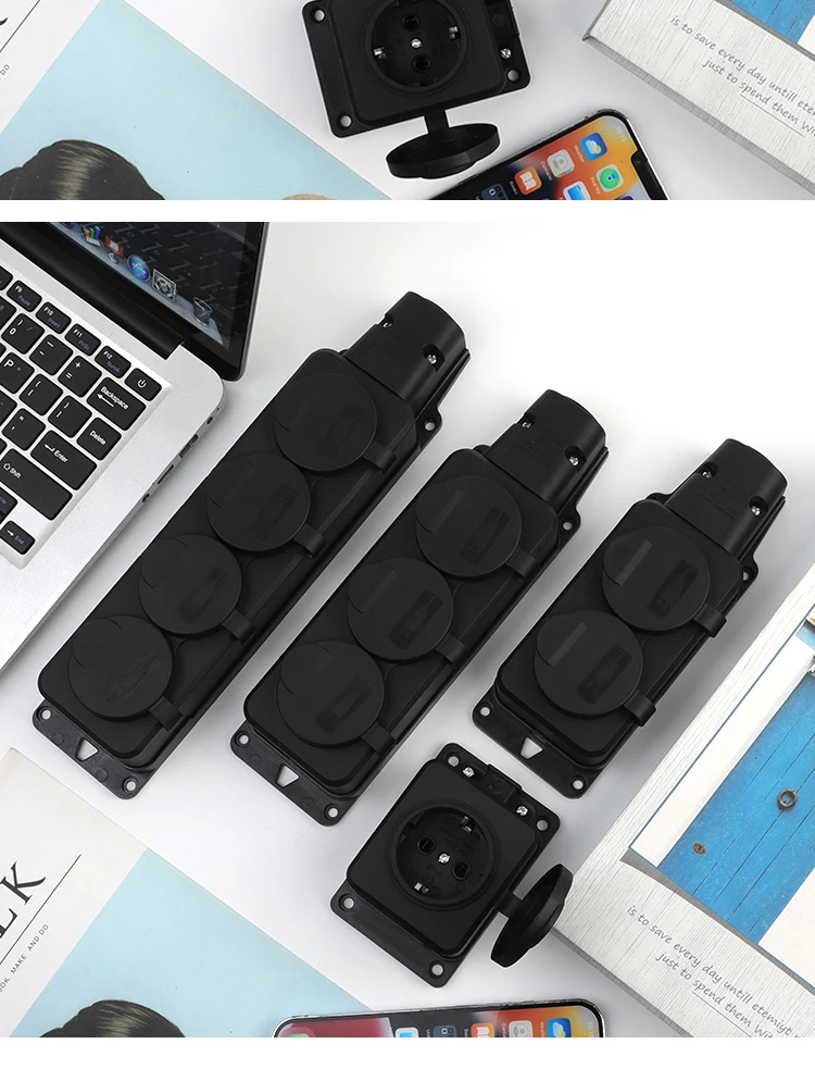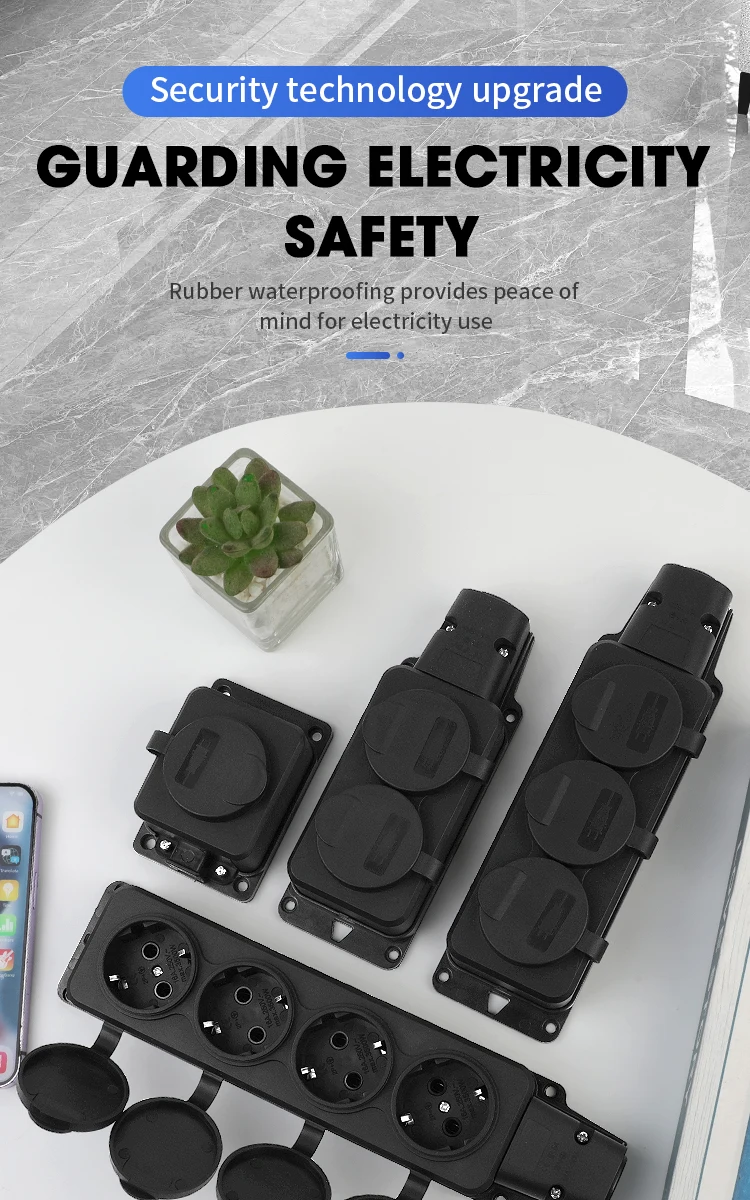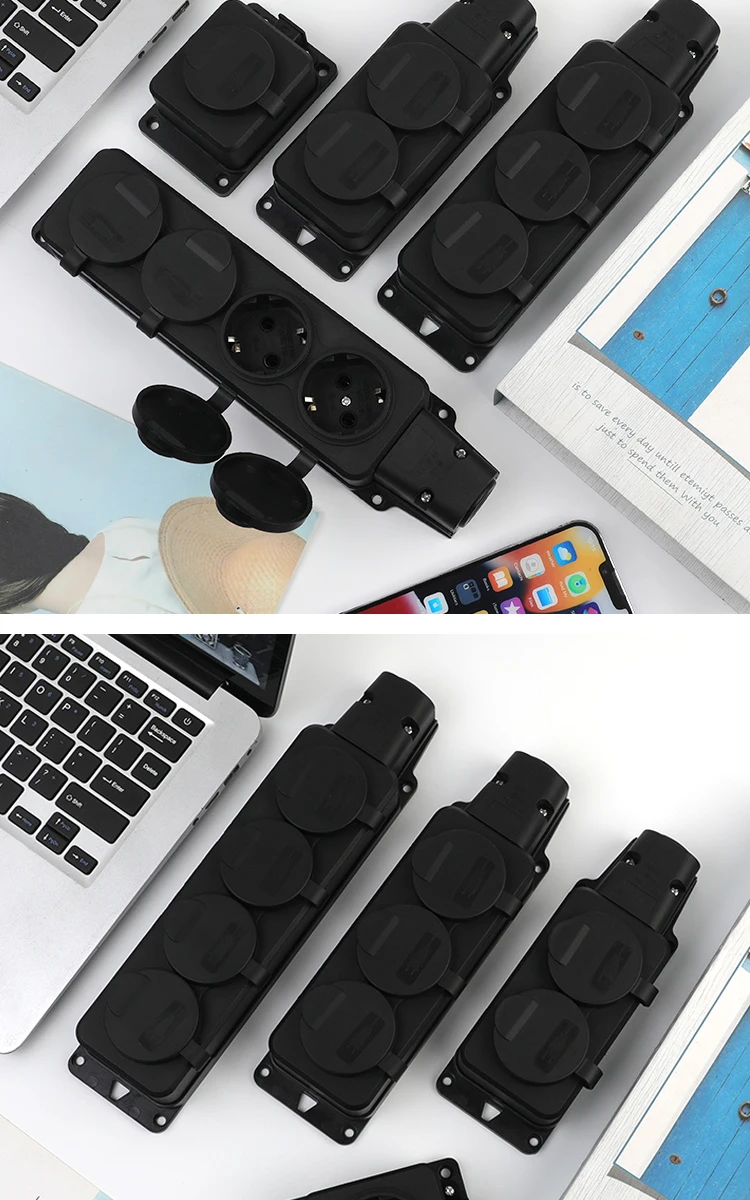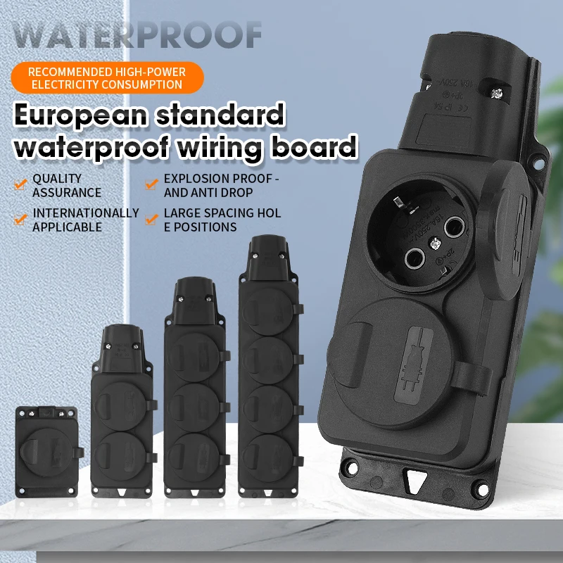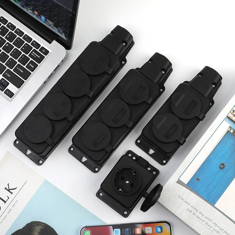 Comprar Toma de corriente industrial impermeable europea IP54 16A, 1/2/3/4 vías, 3500W, toma impermeable para exteriores con cubierta para lluvia