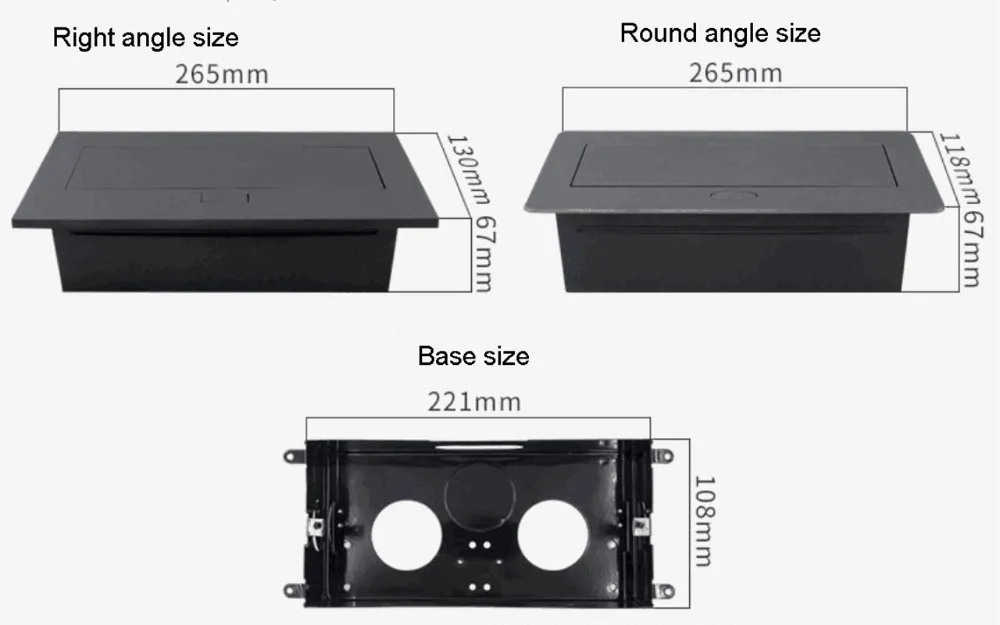 Tamaño: 265*130*67mm (ángulo recto) /265*118*67mm (filete)
