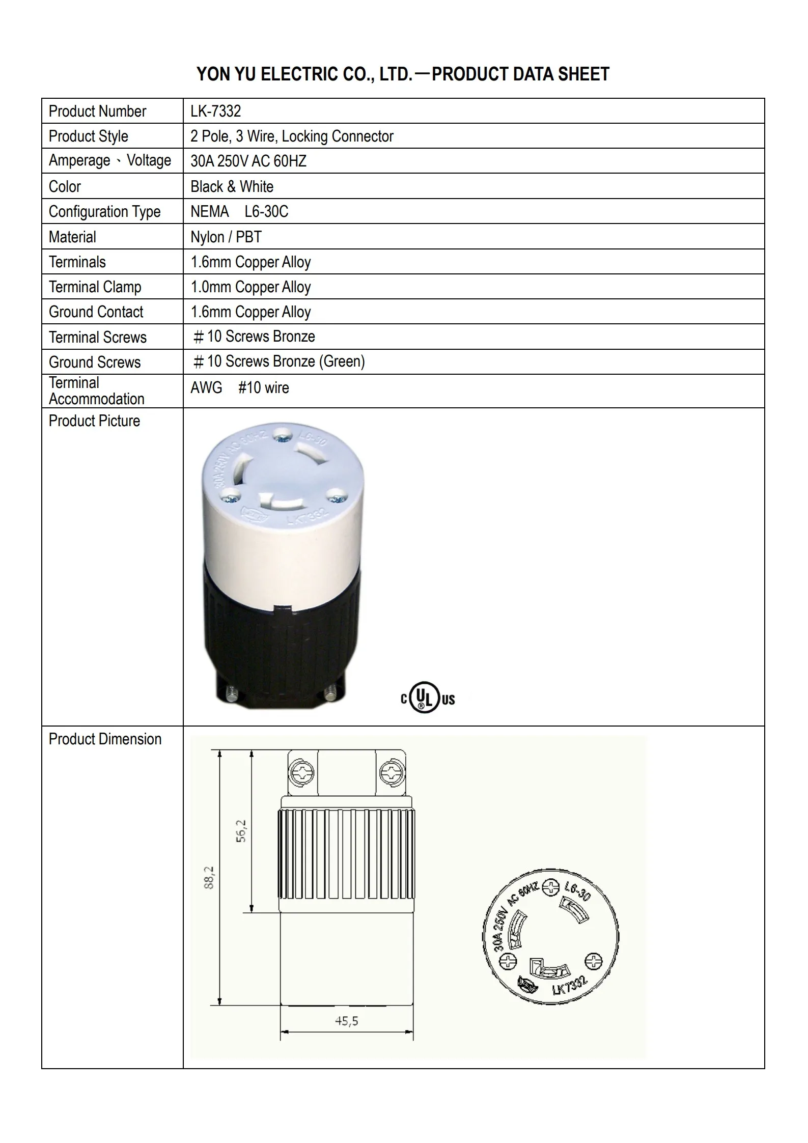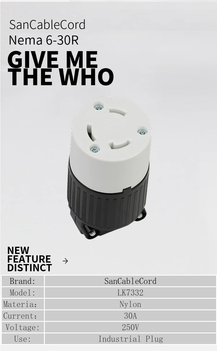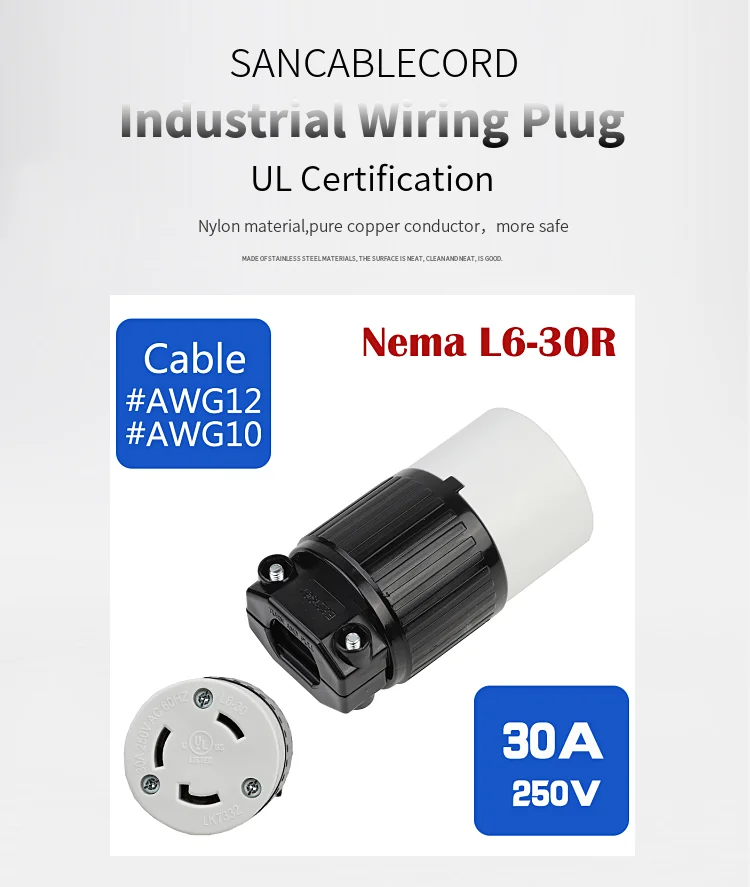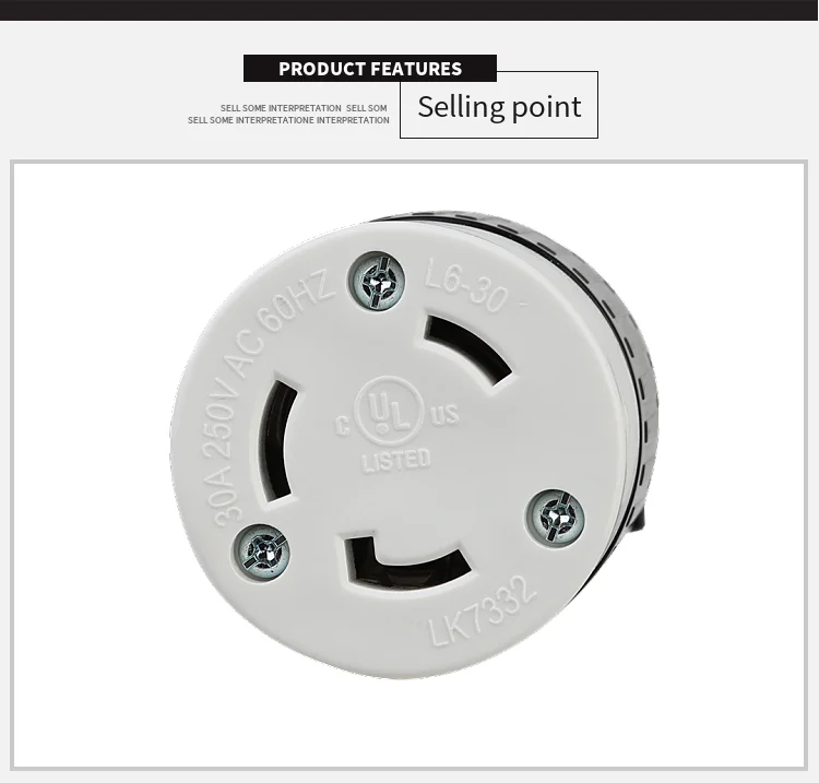 Toma de corriente NEMA L6-30R, enchufe estándar americano de 3 agujeros, 30A, 250V, NEMA L6-30R, conveniente para quitar el enchufe de los Estados Unidos