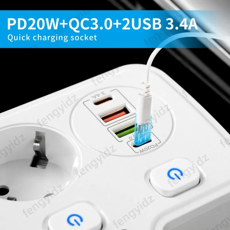 3000W 6 tomas de CA UE +6USB (1*Typec + 5*USB A)