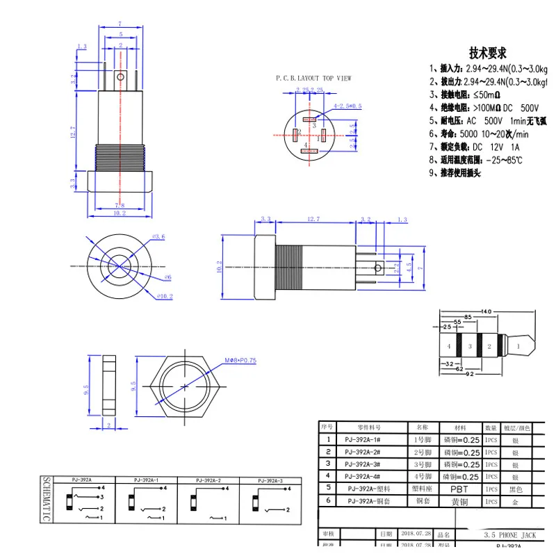 Comprar Toma de piezas para auriculares, conector de Audio de 3,5mm, 10 Pj-392A, 4 polos, 3,5, montaje en Panel estéreo, tuerca, PJ392A