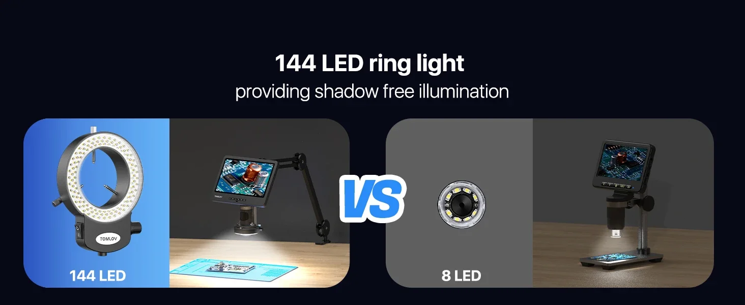 【Ilumina tu vista con un brillante anillo de luz de 144 ledes】Entra en un mundo de claridad sin igual con el microscopio digital Tomlov DM602 Flex LCD. A diferencia de los modelos normales, nuestro microscopio cuenta con un impresionante anillo de luz de 144 LED que ofrece un brillo excepcional y una iluminación uniforme. Cada detalle complejo cobra vida, lo que le permite explorar sus temas con una precisión y claridad incomparables.