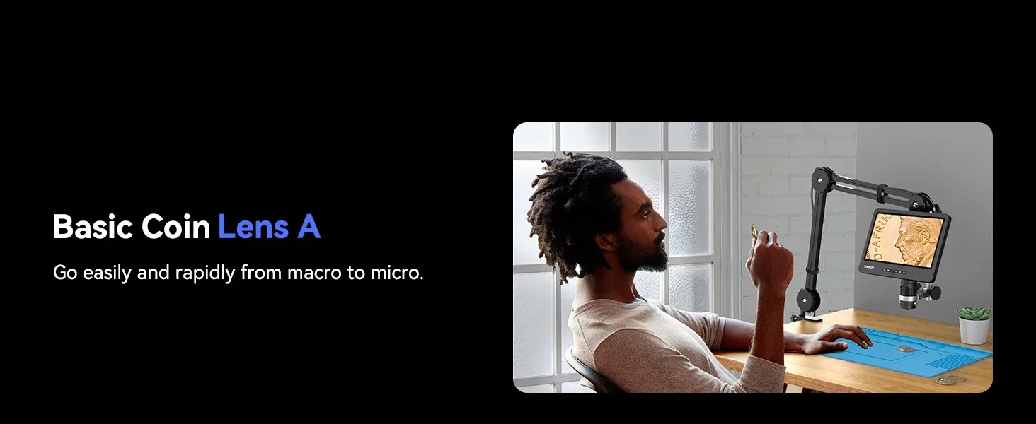 【Desbloquee el descubrimiento sin límites con lentes intercambiables】Experimenta un mundo de maravillas con el microscopio digital Tomlov 2000x y sus 3 lentes intercambiables. Amplíe los detalles utilizando la Lente L (60x-200x) para una gran ampliación y una distancia de trabajo óptima. Explore los fascinantes patrones de monedas con la lente A (2x-700x), proporcionando una experiencia de observación de vista completa. Sumérjase en el cautivador microcosmos con la lente D (1000x-2000x) para un aumento impresionante de hasta 2000x.