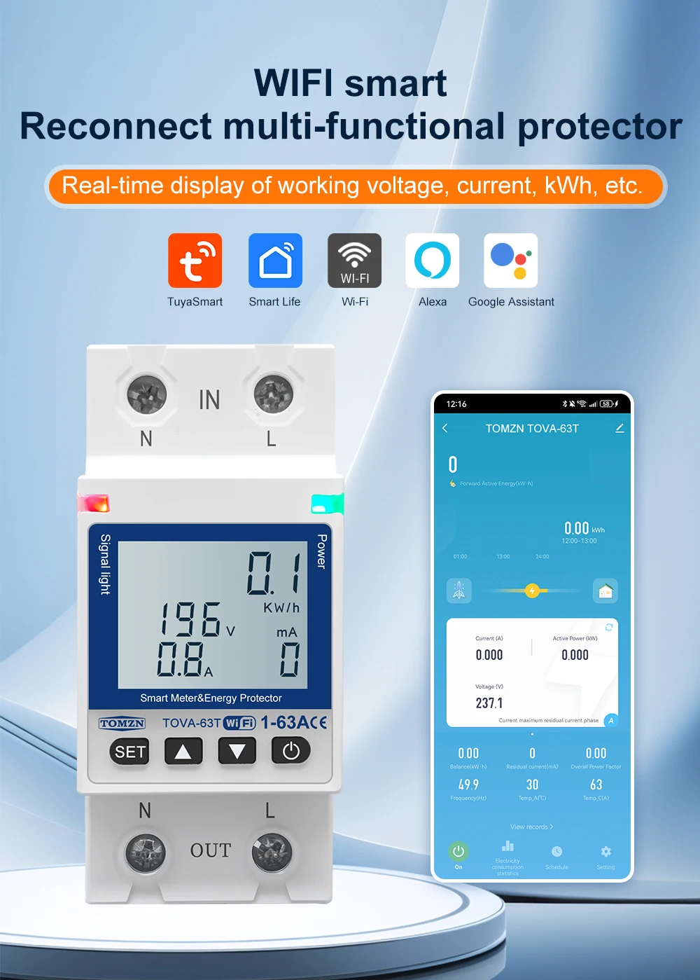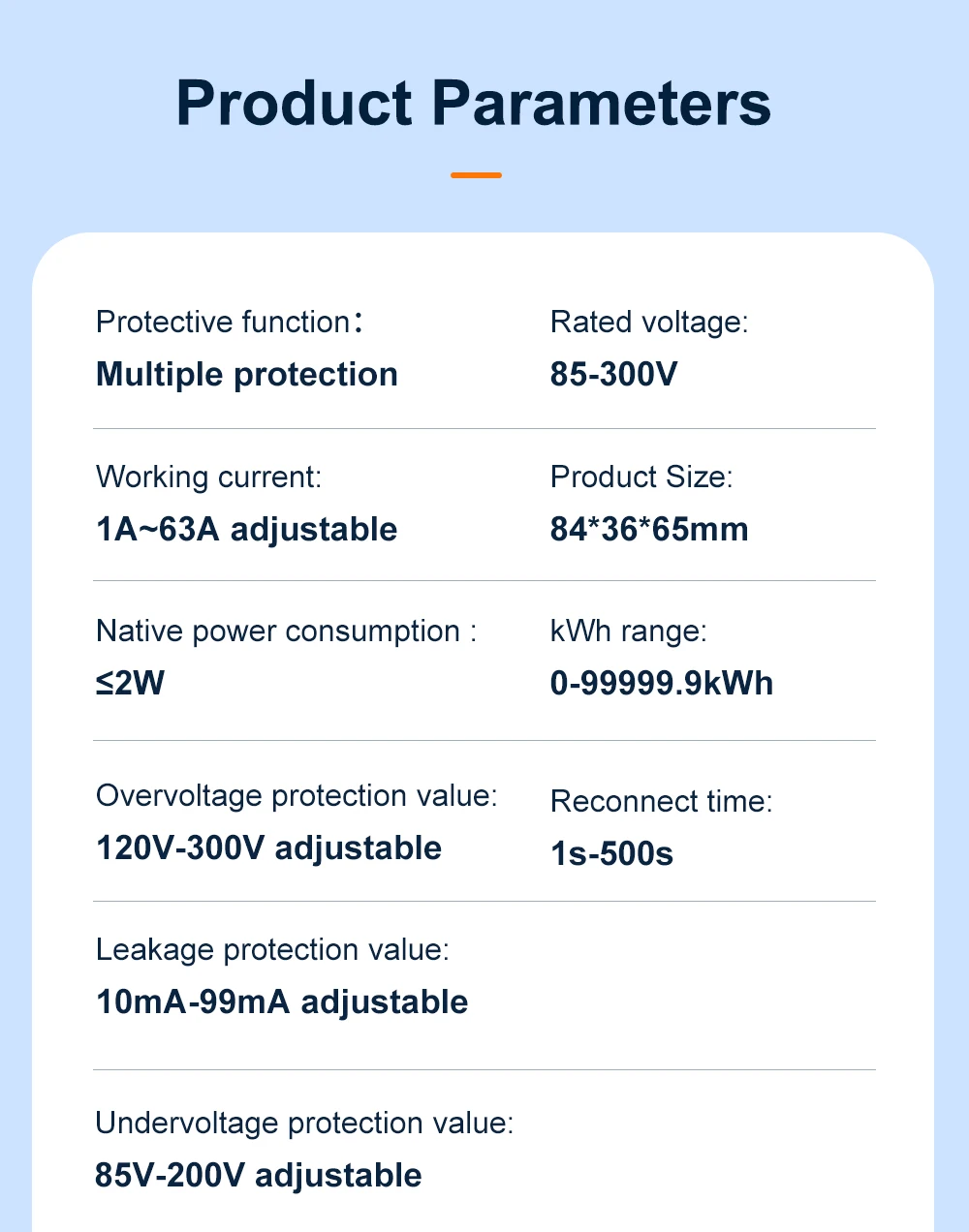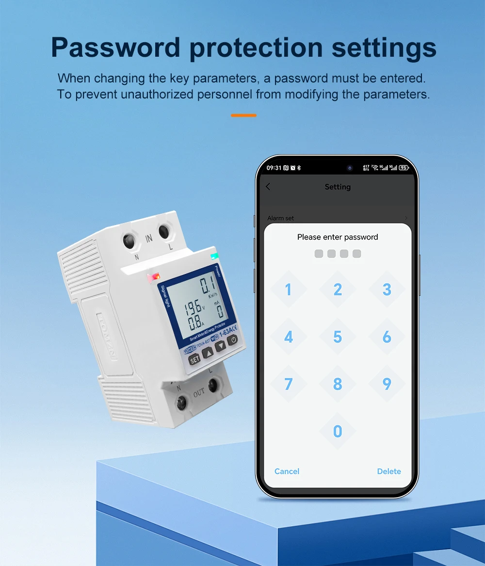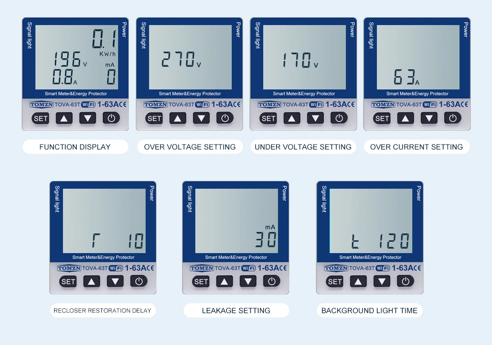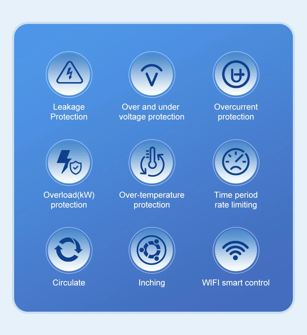 6.Puede configurar sobrecarga/sobretensión/bajo voltaje/sobrecorriente/corriente de fuga/alta temperatura en la aplicación