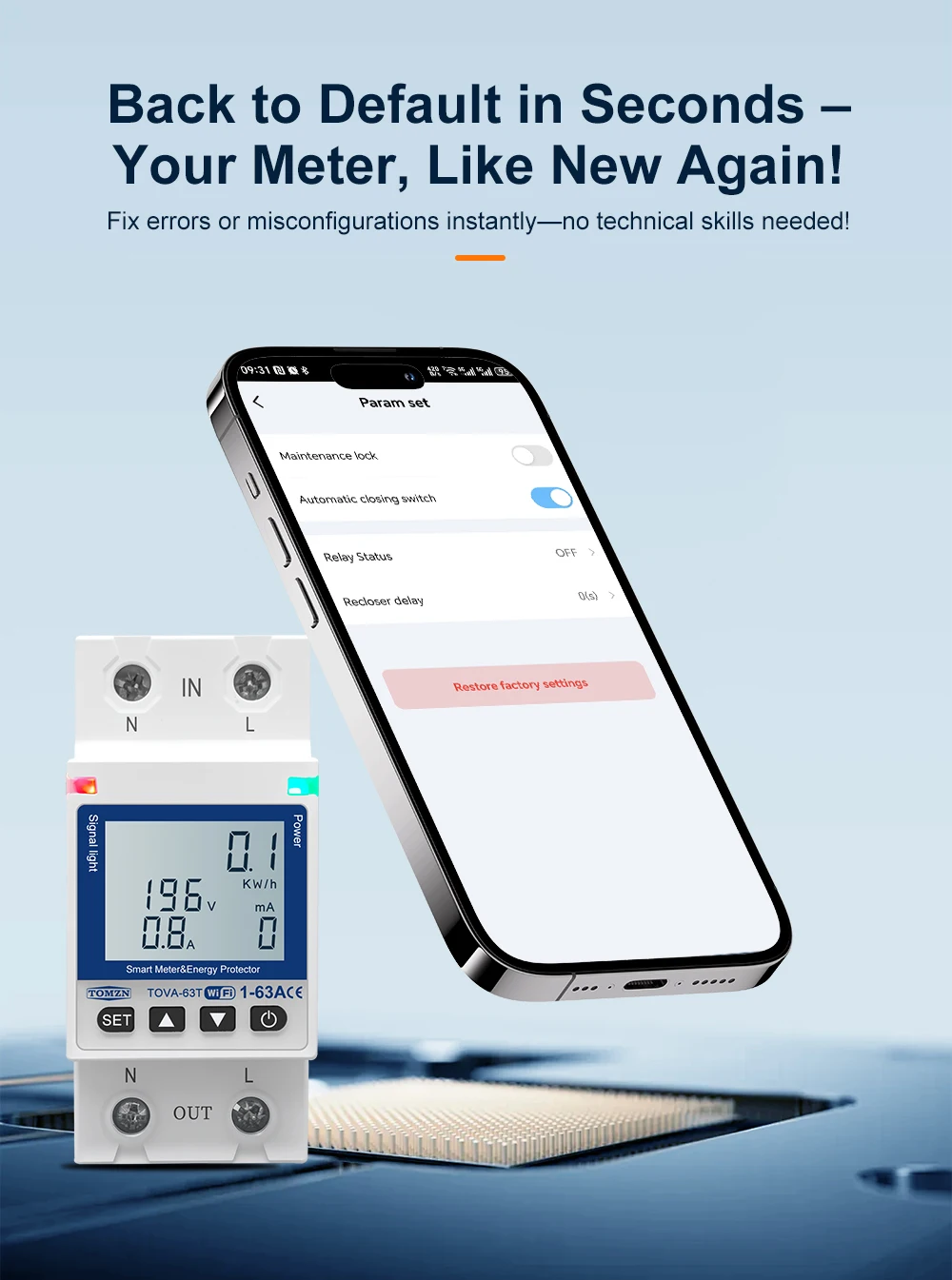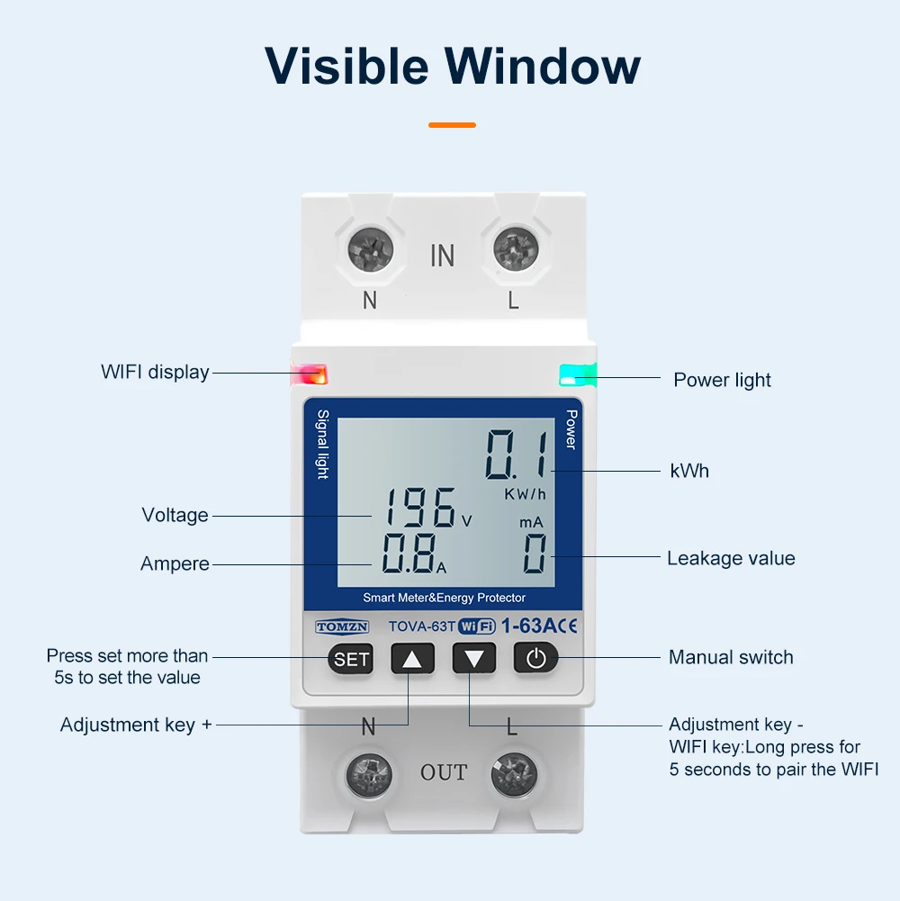 10.Protección contra sobrecorriente 1A-63A (ajustable) (predeterminado: 63A)