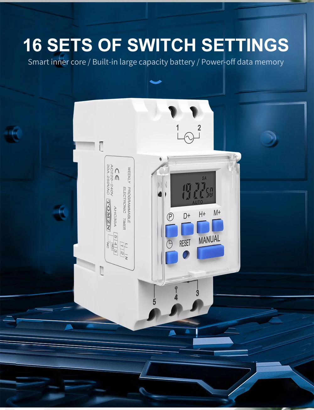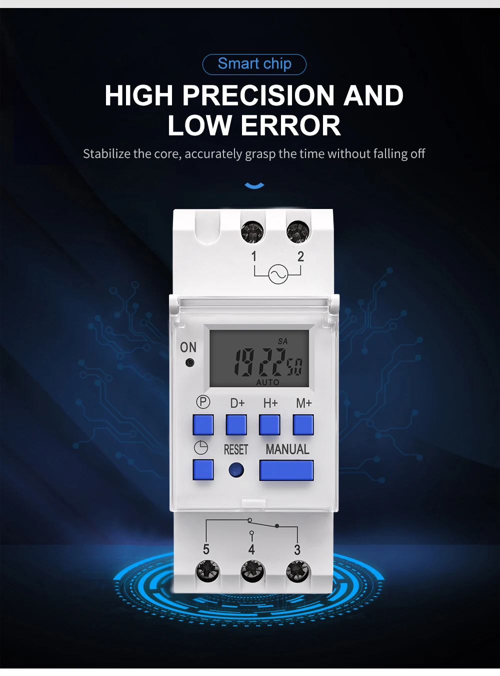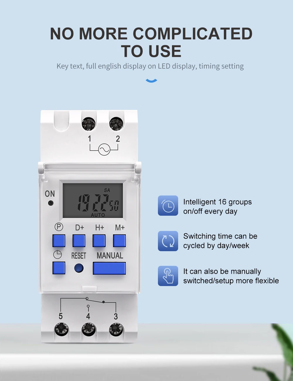 Temporizador electrónico digital con programas diarios y semanales