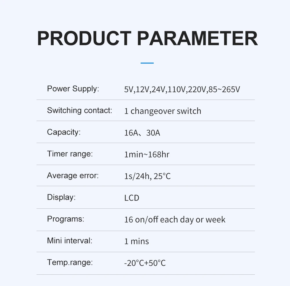 Rango del temporizador: 1 min ~ 168 h