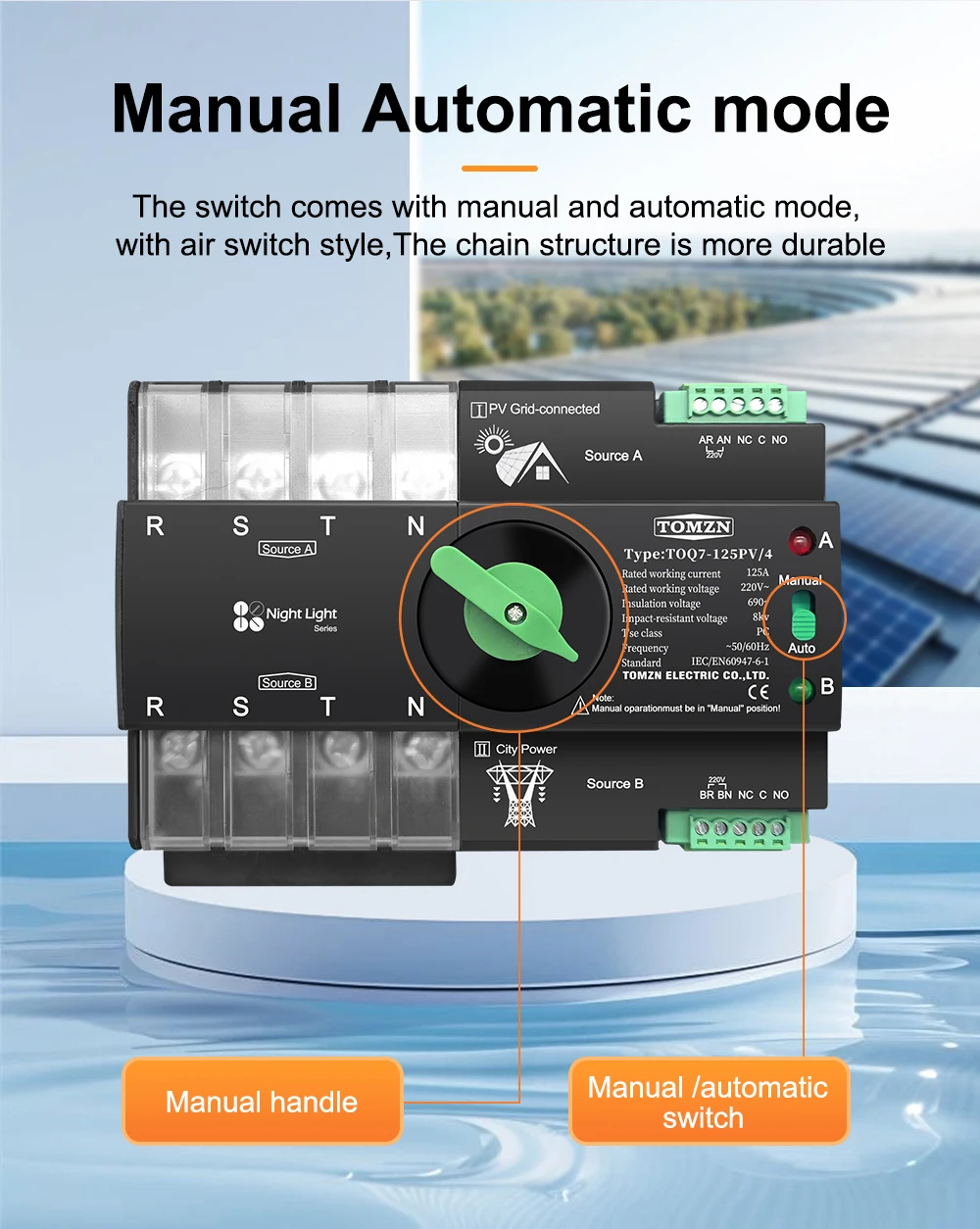 La potencia de red estable para la fuente B.El propósito del uso es fotovoltaico como fuente de energía principal, y la fuente de energía de respaldo es la energía eléctrica.