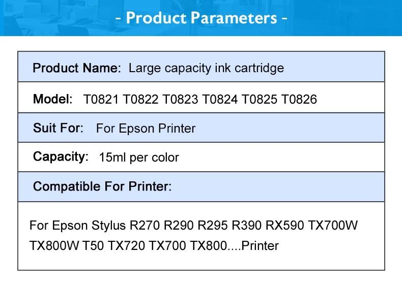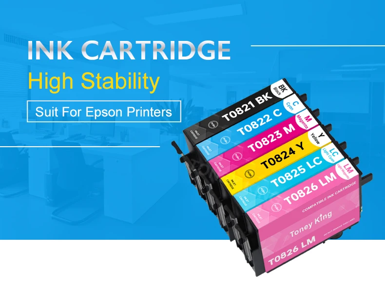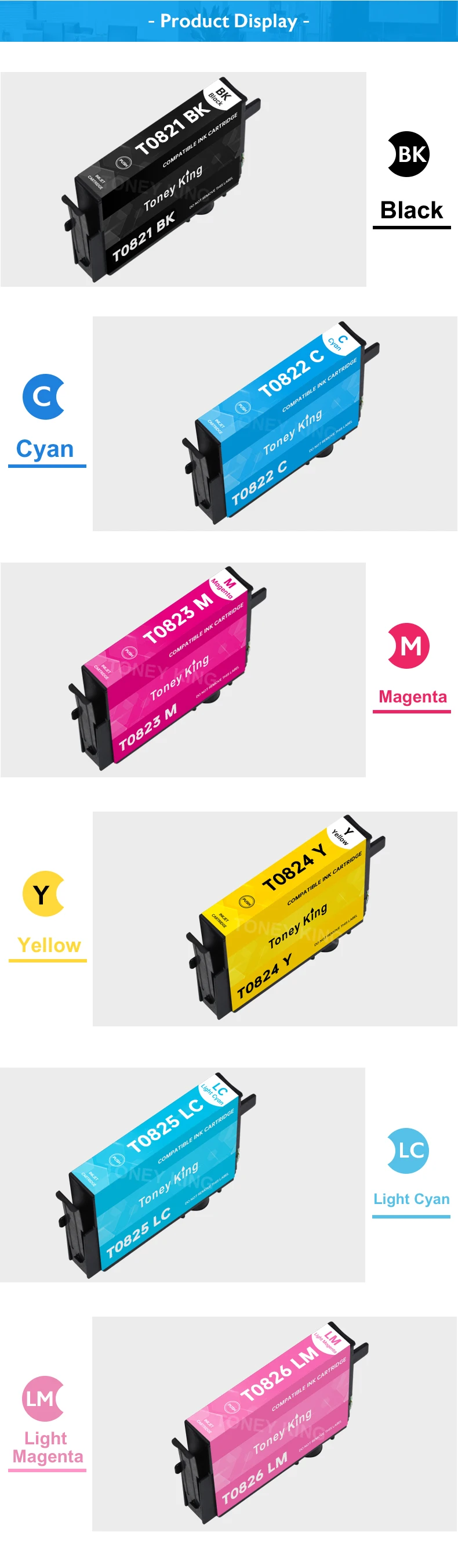 Toney King T0821 - T0826 Ink Cartridge For Epson Stylus Photo R270 R290 R390 RX590 RX610 RX690
