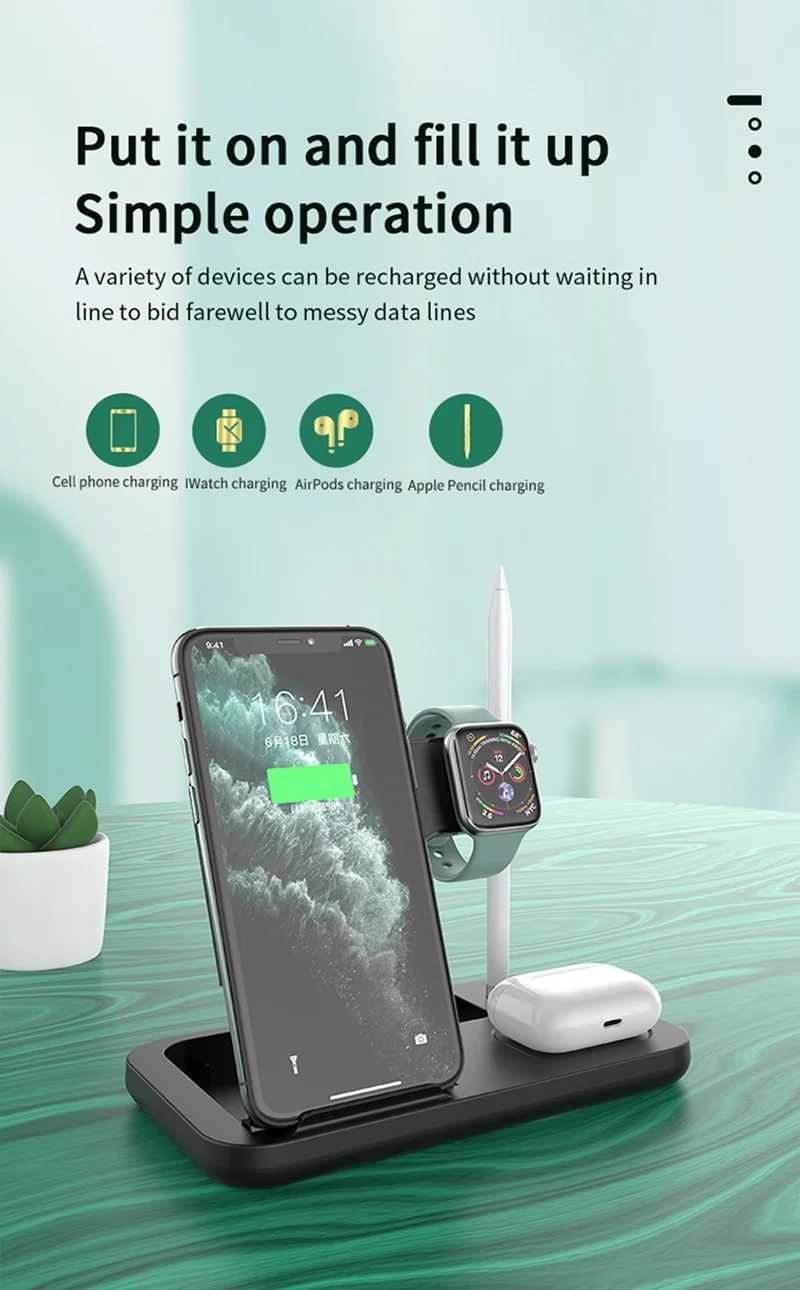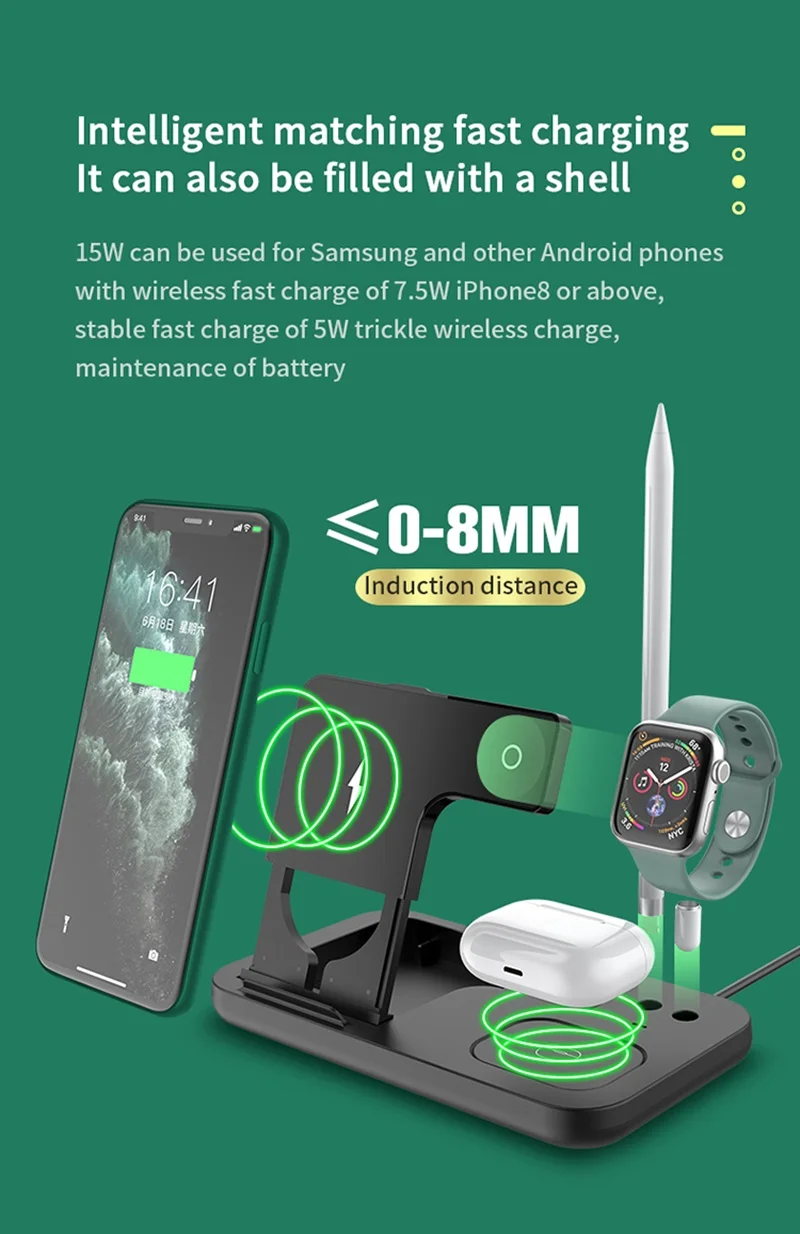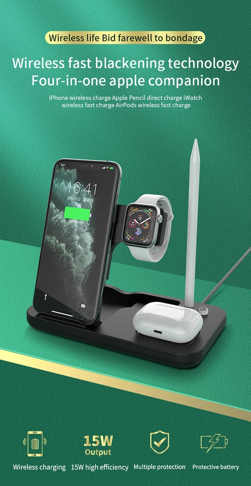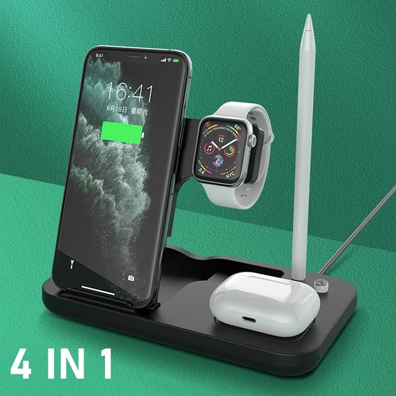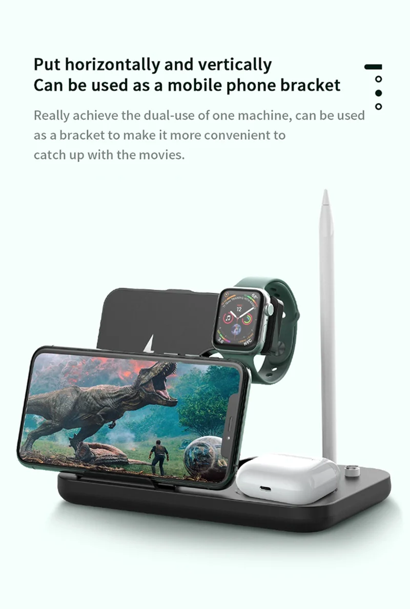 Cargador inalámbrico rápido Tongdaytech 4 en 1 15W Qi para Airpods Apple Watch 5 4 3 2 1 estación de carga para Iphone 8 X XS 12 11 Pro MAX