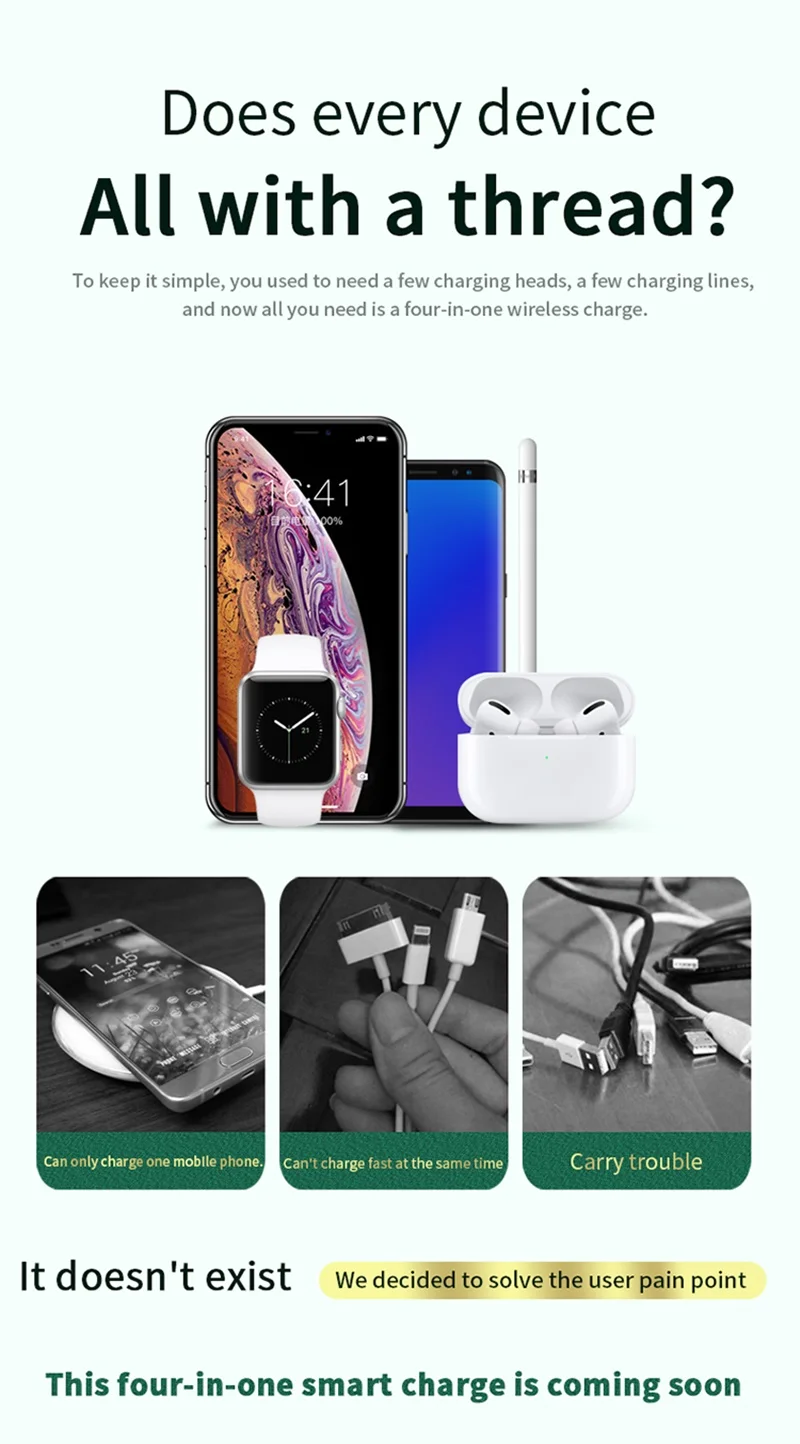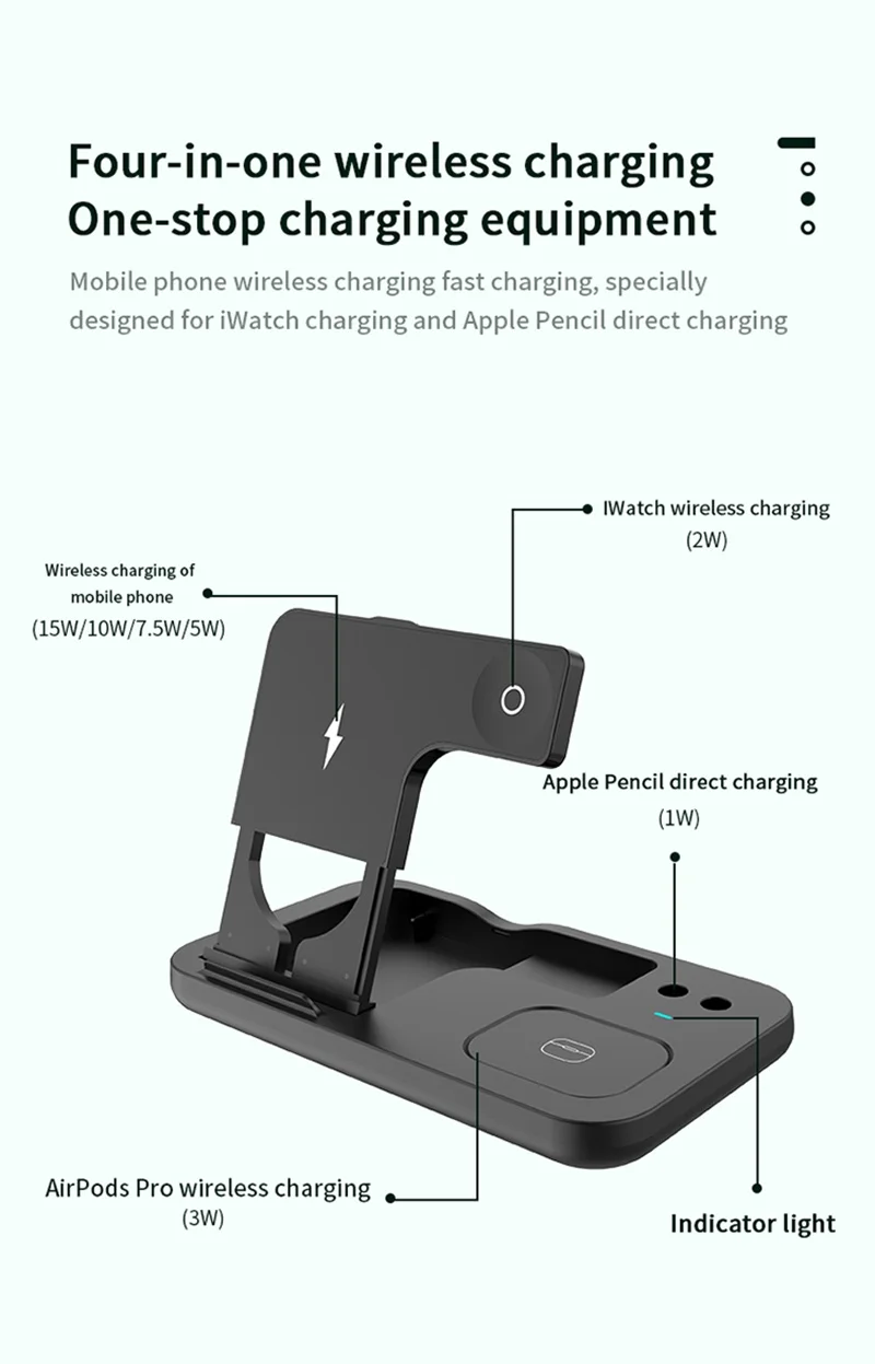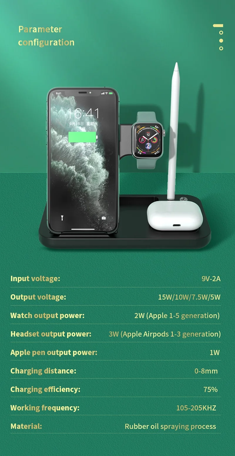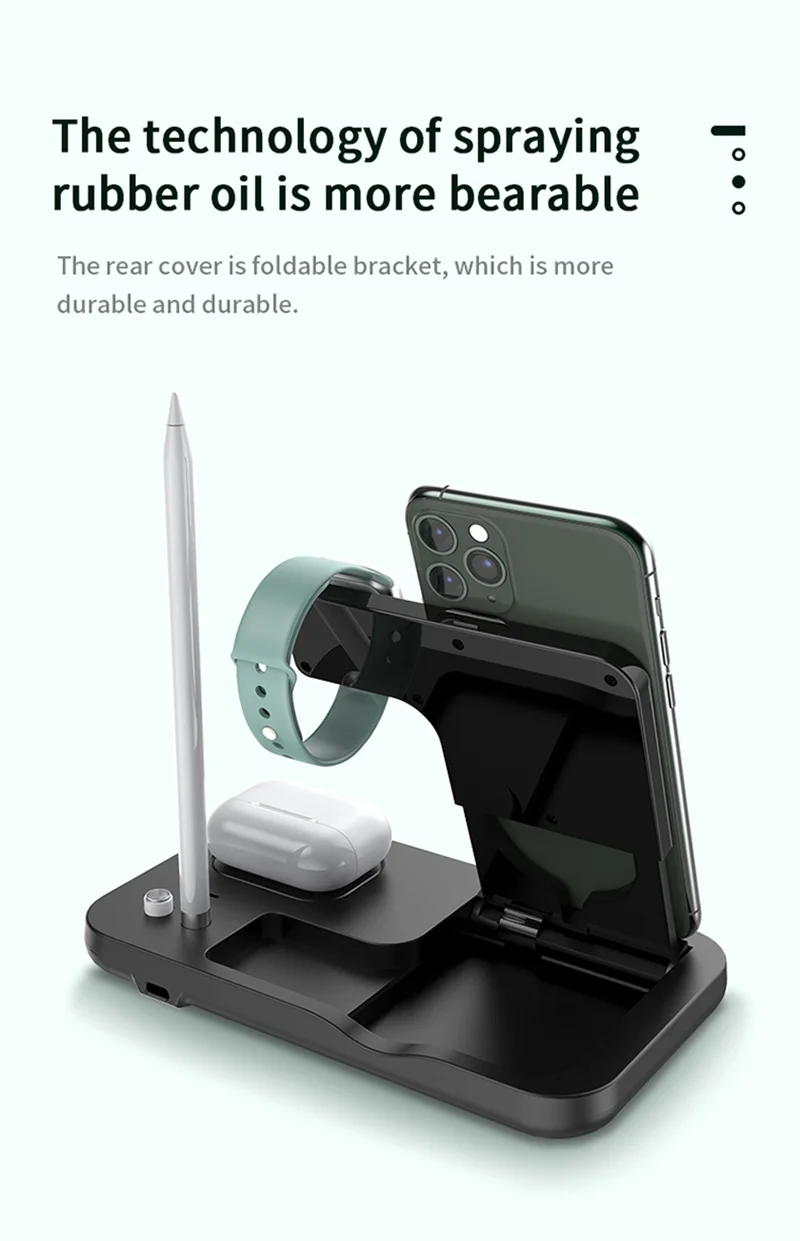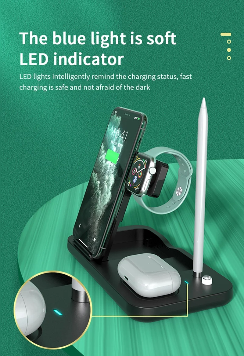 Cargador inalámbrico rápido Tongdaytech 4 en 1 15W Qi para Airpods Apple Watch 5 4 3 2 1 estación de carga para Iphone 8 X XS 12 11 Pro MAX