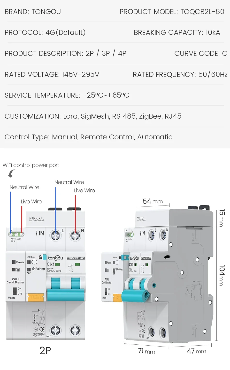 TipoDisyuntorEs un dispositivo inteligenteSíNúmero de modeloTOQCB2L-80TipoFuga de tierraNombre de marcaTONGOUOrigenChian continentalCertificaciónCEGarantíaUn añoComprar TONGOU-Disyuntor de medición WiFi RCBO, temporizador de vida inteligente, 2P, 3P, 4P, Control remoto, interruptor inalámbrico automático, API, Tuya