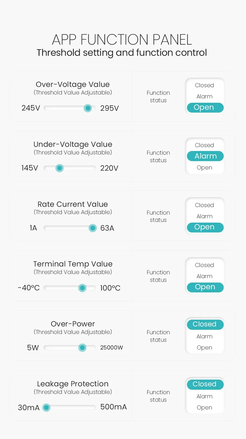 1. Medición, Día, mes, año de almacenamiento medido, control global, temporizador, control de voz, protección contra fugas, protección contra sobrecarga, protección contra cortocircuitos, protección contra sobrecorriente, protección contra sobretensión, protección de temperatura del cableado, funciona con Alexa,Google home,IFTTT.