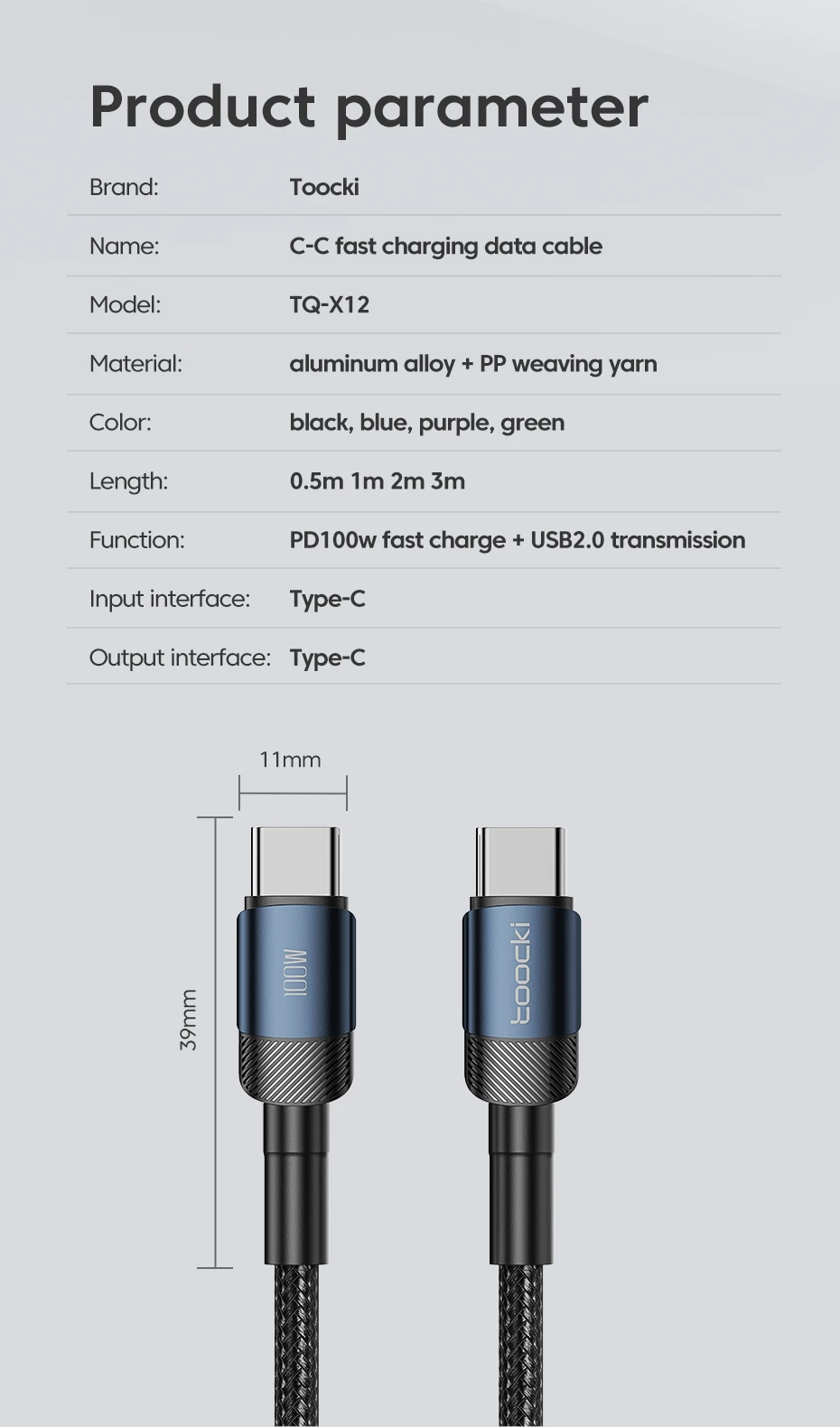 Toocki 100W 6A USB tipo C Cable USB C de datos de carga rápida para Huawei Xiaomi Samsung oneplus USB A a tipo C cabo