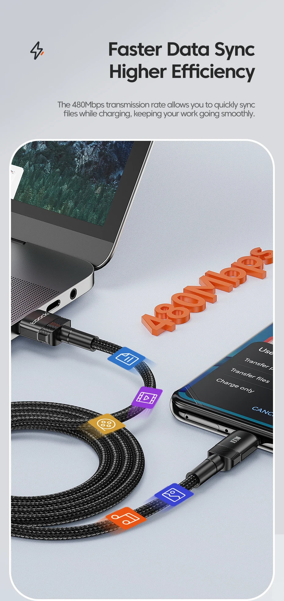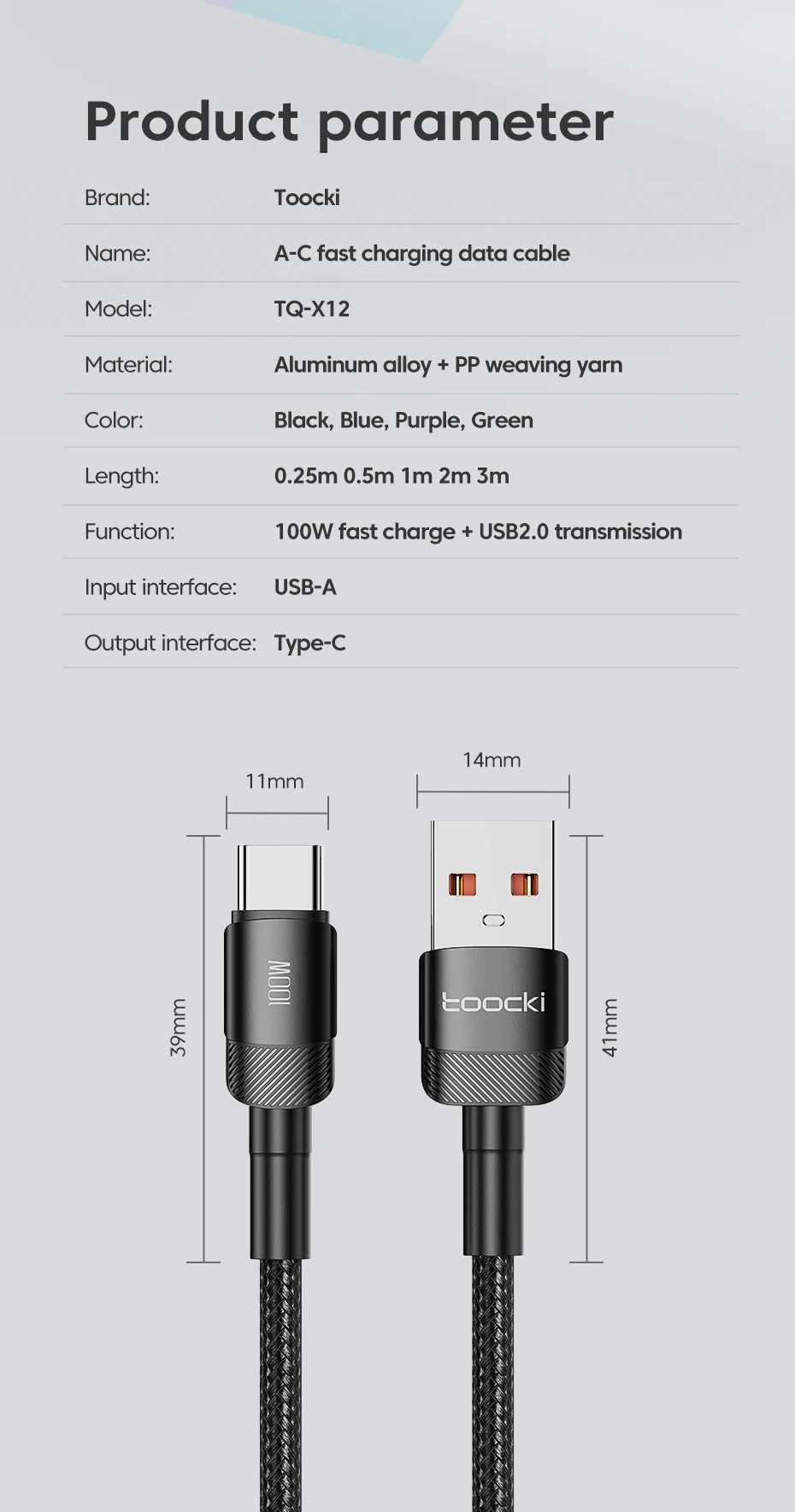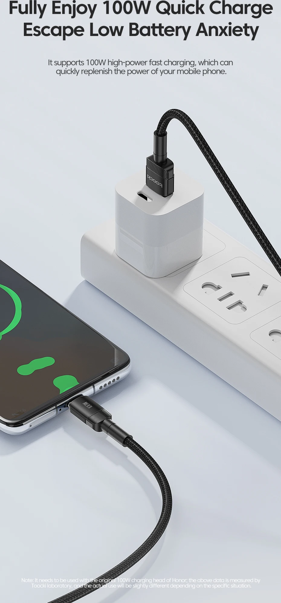 Toocki 100W Cable USB C Cable cargador tipo C de carga súper rápida para iPhone 15 Huawei Honor Samsung Xiaomi USBC Cable de carga de datos