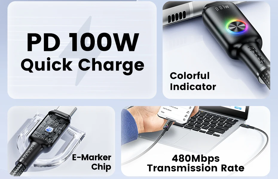 Cable muy largo y buena calidad es RGB de 100 wats, carga rápida y Power delivery. Recomiendo por el costo calidad, precio