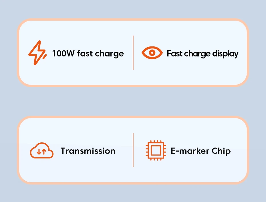 PD 100W Fast Charging, Fast Charge Power Display, High Speed Transmission, E-Marker Ship