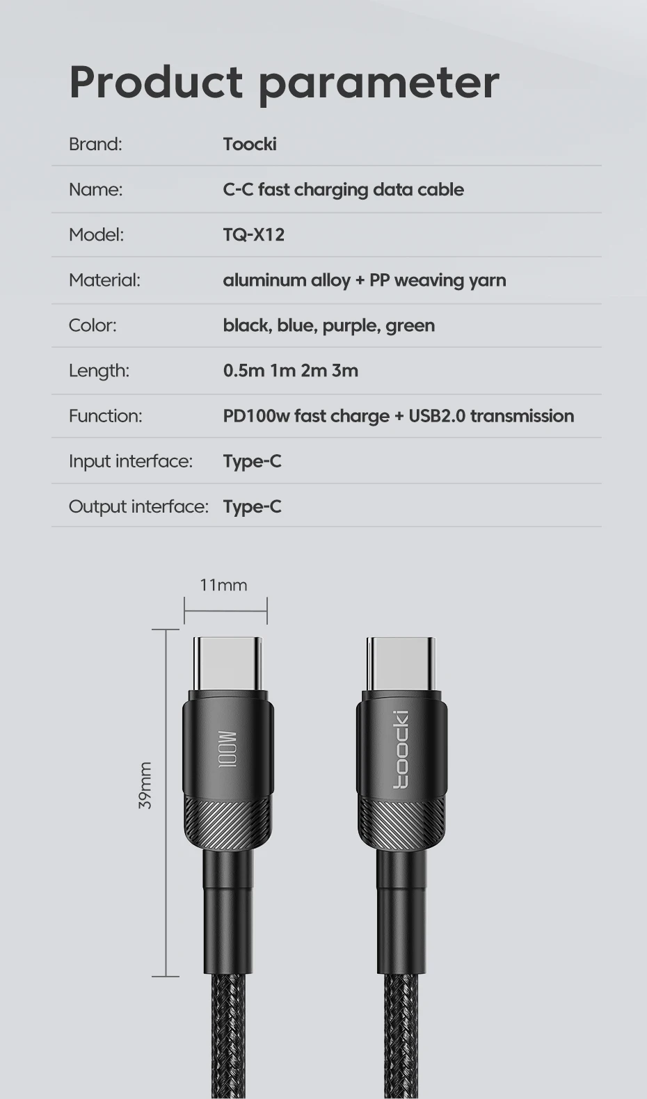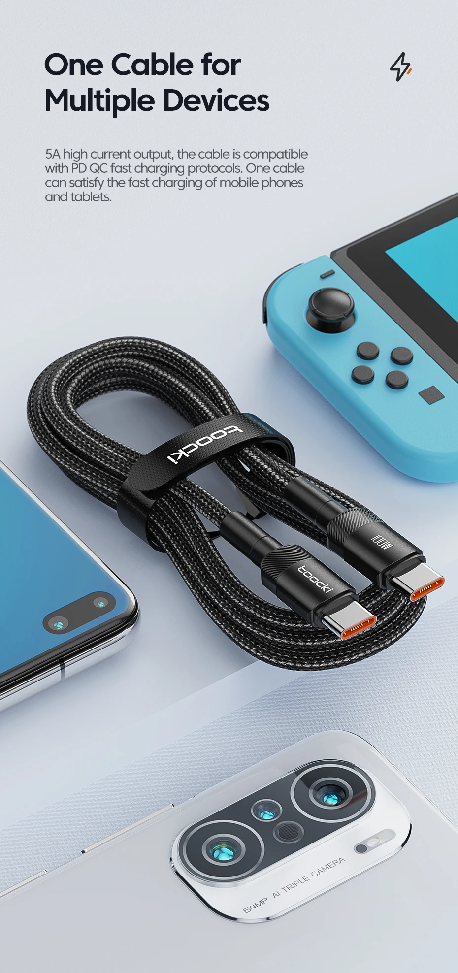 Comprar Toocki 100W tipo C a USB C Cable PD 3,0 carga rápida 4,0 carga rápida tipo C a tipo C para iPhone 15 Macbook Samsung Xiaomi