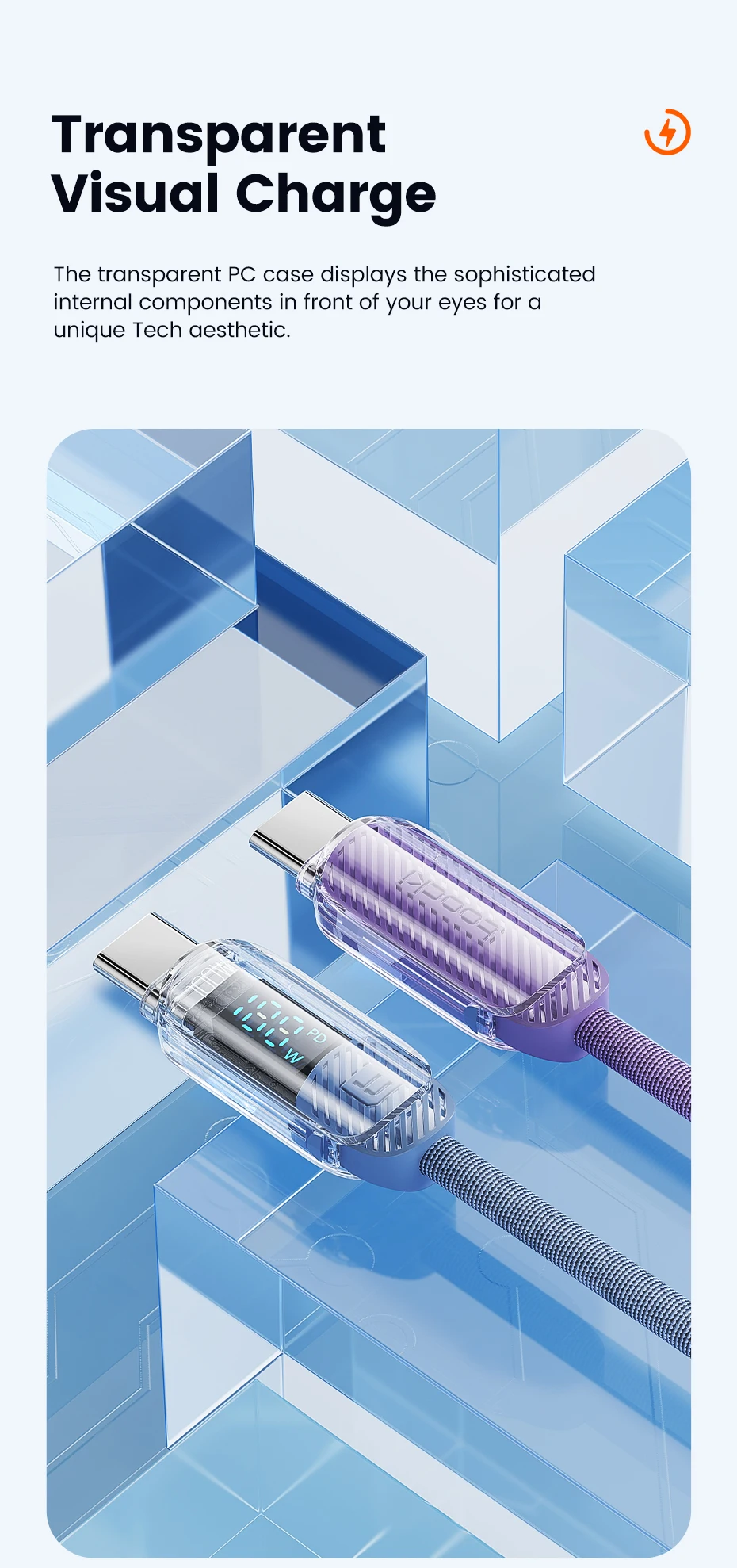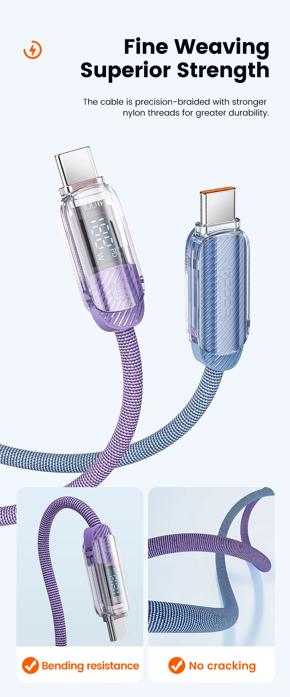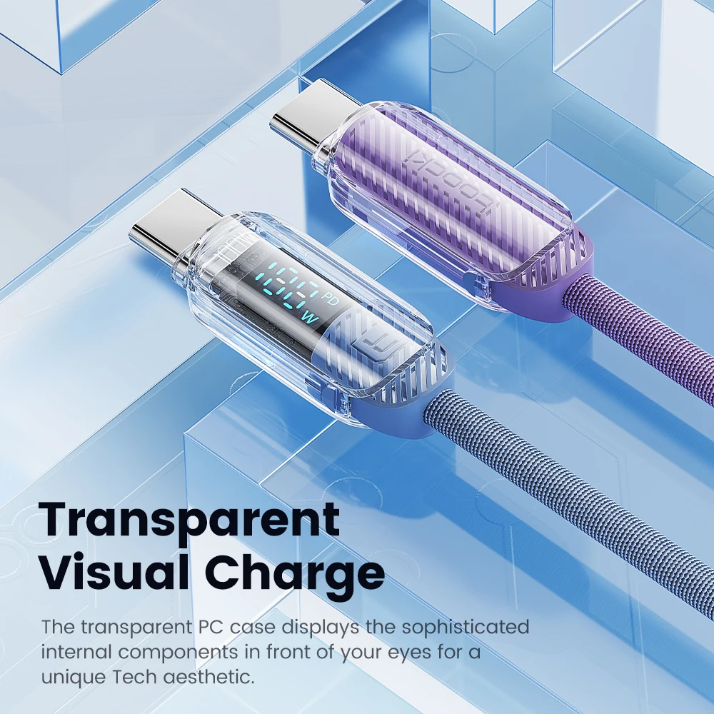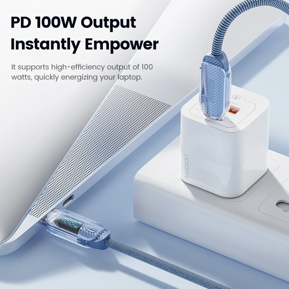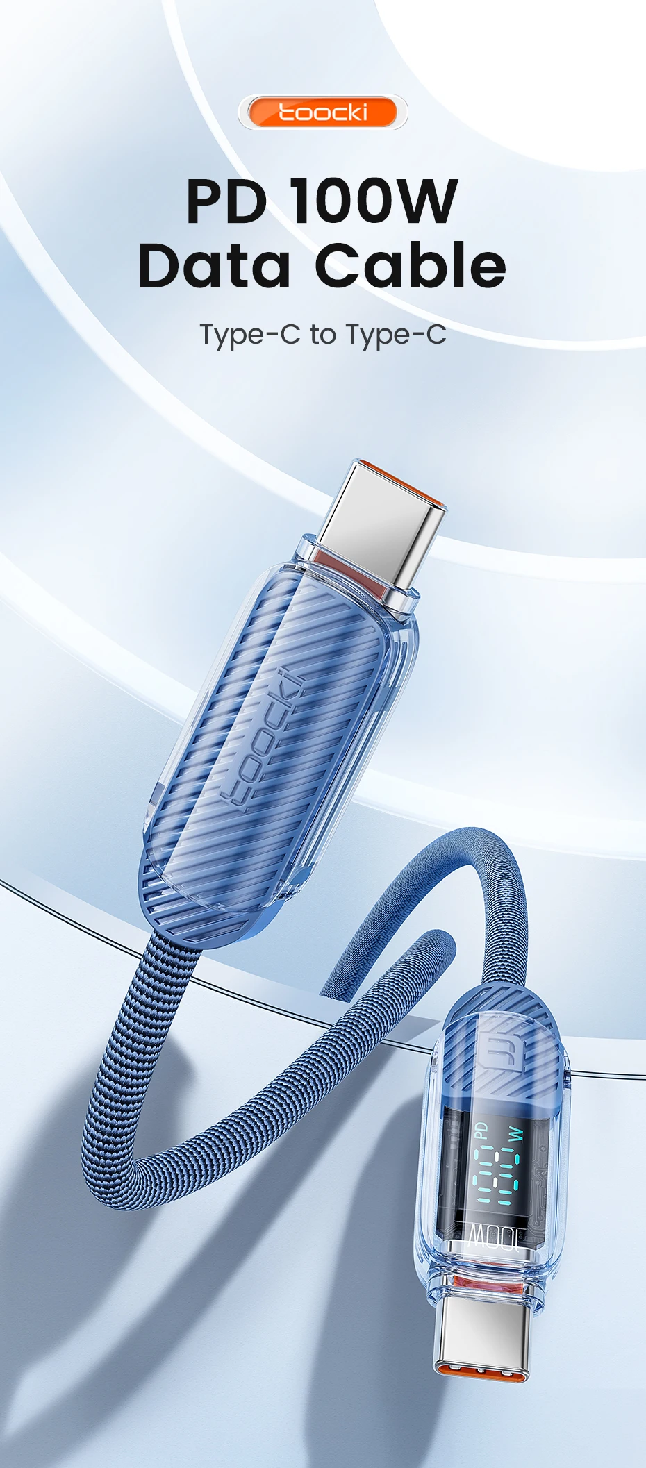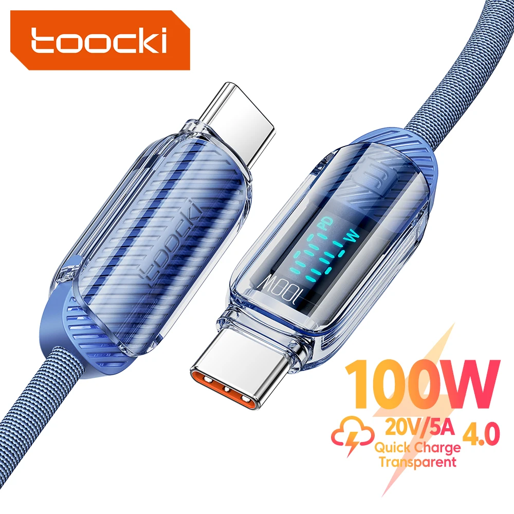Comprar Toocki 100W USB C a USB C Cable de pantalla PD carga rápida transparente tipo C a tipo C Cable para Macbook Xiaomi Samsung Poco Realm