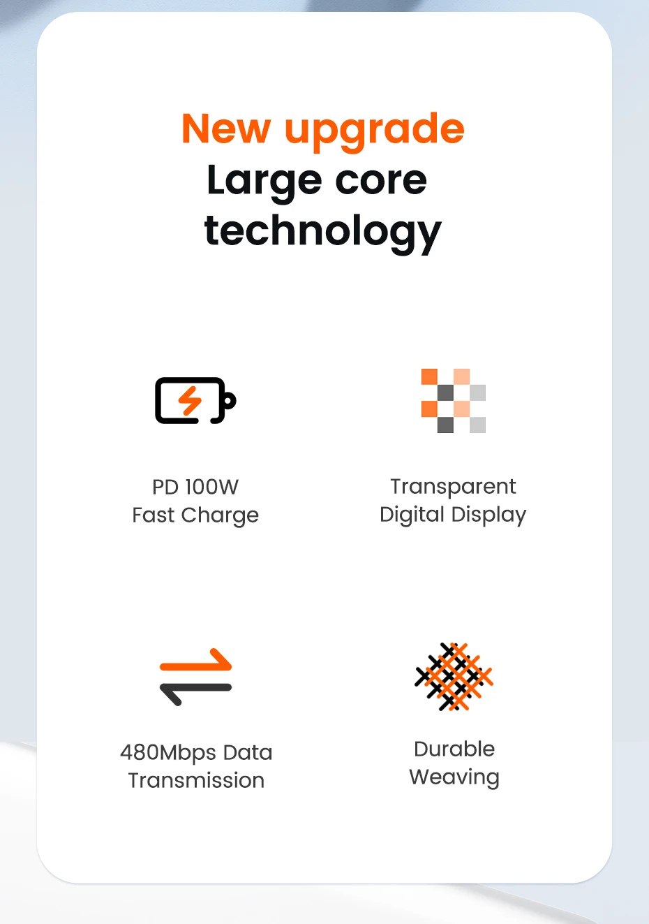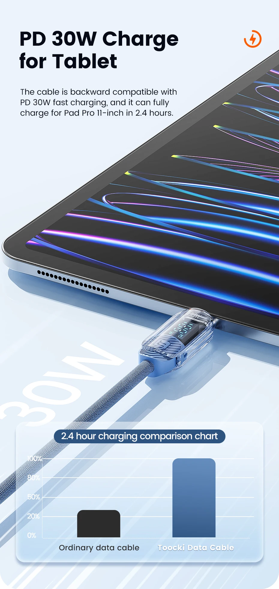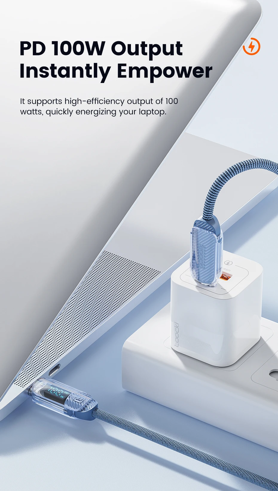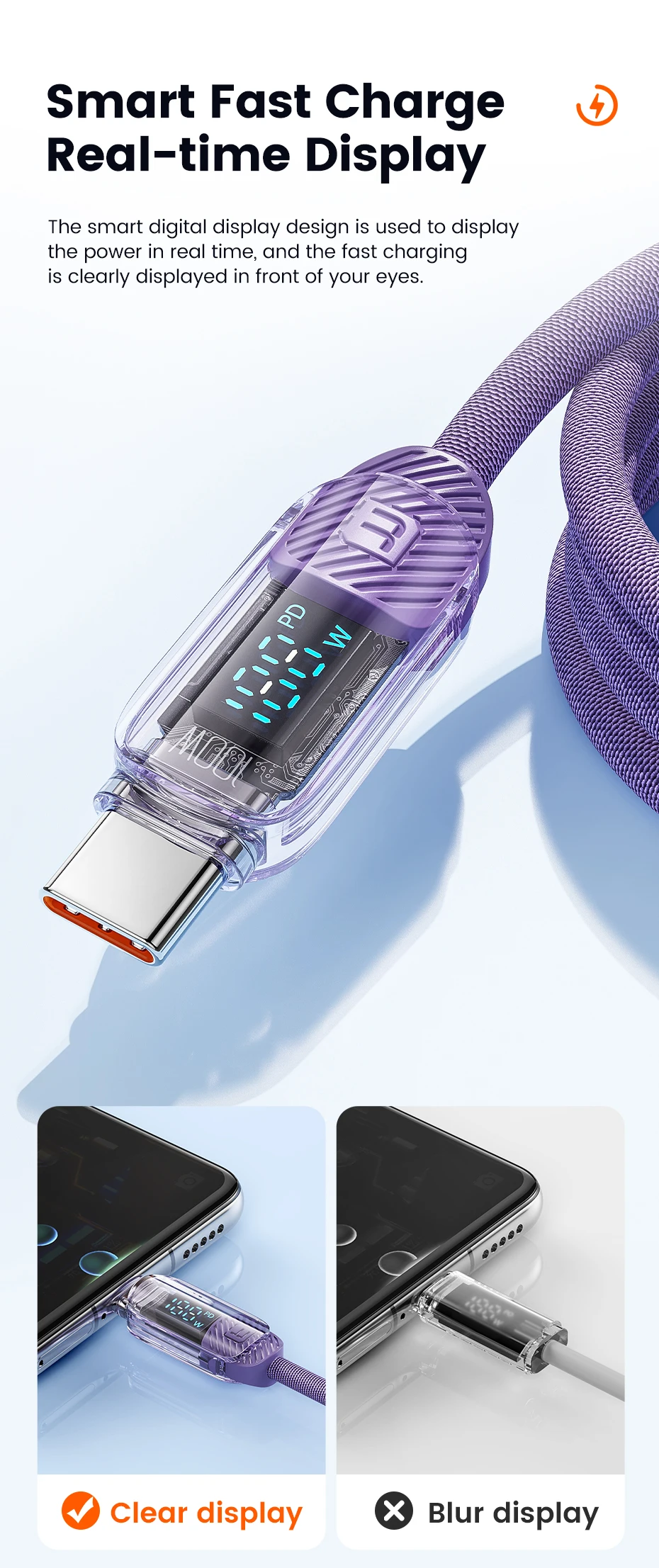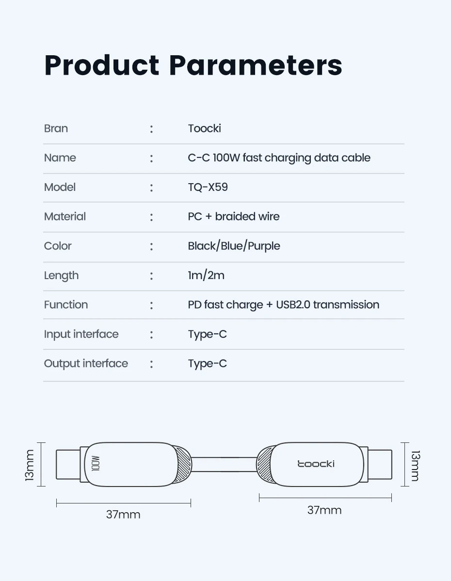 Comprar Toocki 100W USB C a USB C Cable de pantalla PD carga rápida transparente tipo C a tipo C Cable para Macbook Xiaomi Samsung Poco Realm