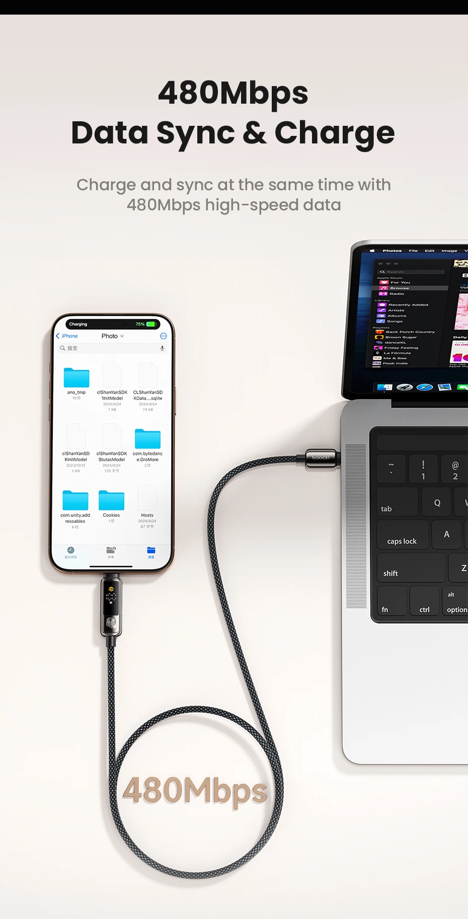 Cuenta con una velocidad de transmisión de hasta 480 Mbps.La carga mientras se transfiere datos no afectará la eficiencia: disfrute de una carga rápida y sincronización de datos simultáneamente.