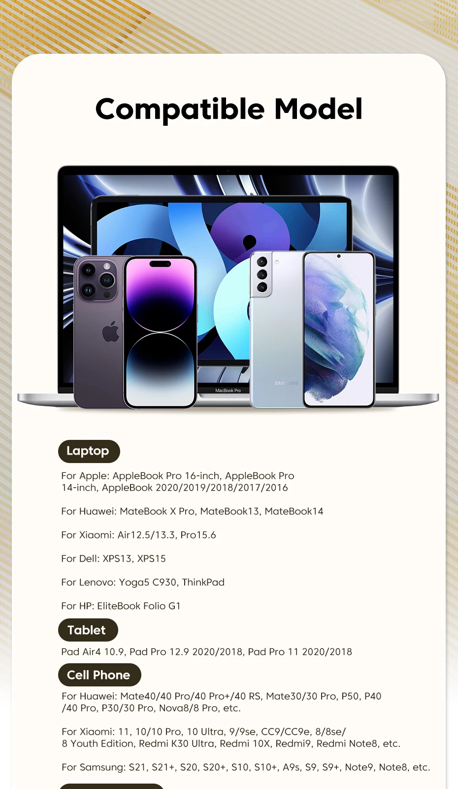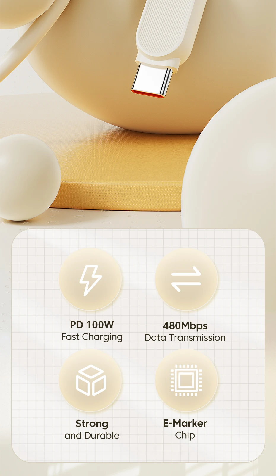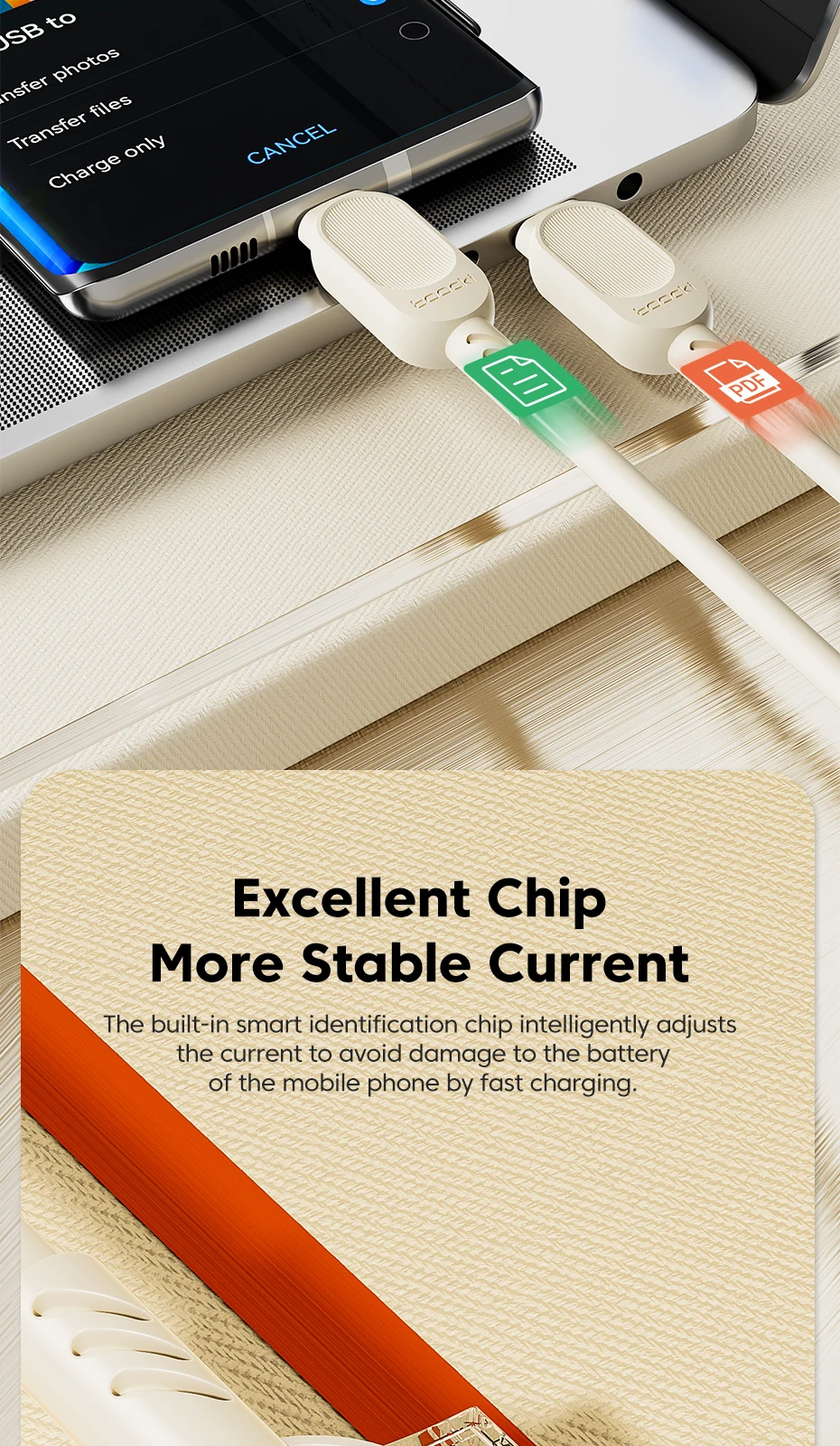 Excelente calidad de construcción, funcionó perfectamente con el cargador original de Samsung para el S 23, sin pérdida en la calidad y velocidad de carga, carga súper rápido.
