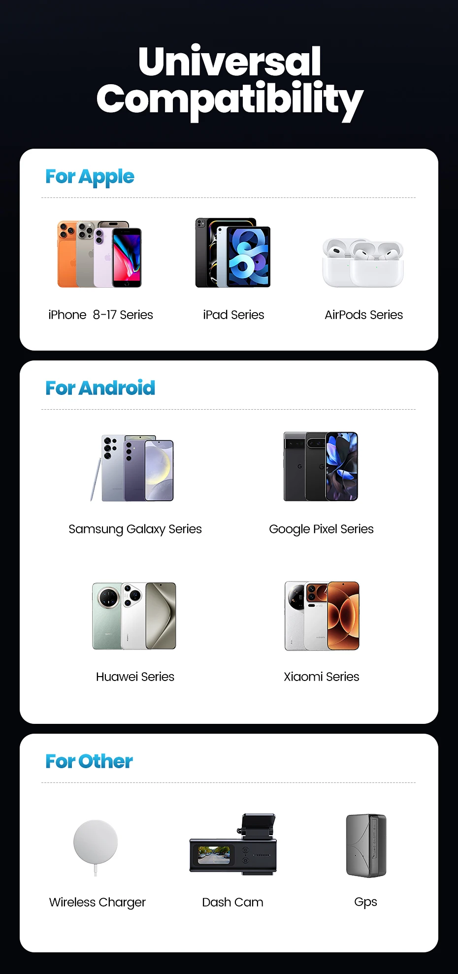 ✅Puerto único 45 W máx.: USB-C2 ofrece hasta 45 W, lo que ofrece una carga rápida de 45 W en todo tipo de vehículos.Admite Samsung PPS, proporciona carga de velocidad completa para iPhone 16/17 y cumple con los requisitos de energía de carga inalámbrica Qi 2.2.