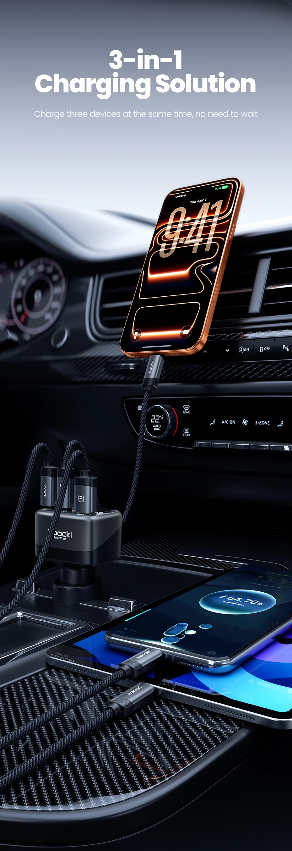 ✅Carga rápida de 3 puertos: solución de carga 3 en 1, carga tres dispositivos al mismo tiempo, sin necesidad de esperar.