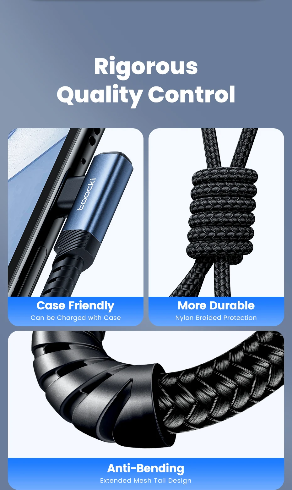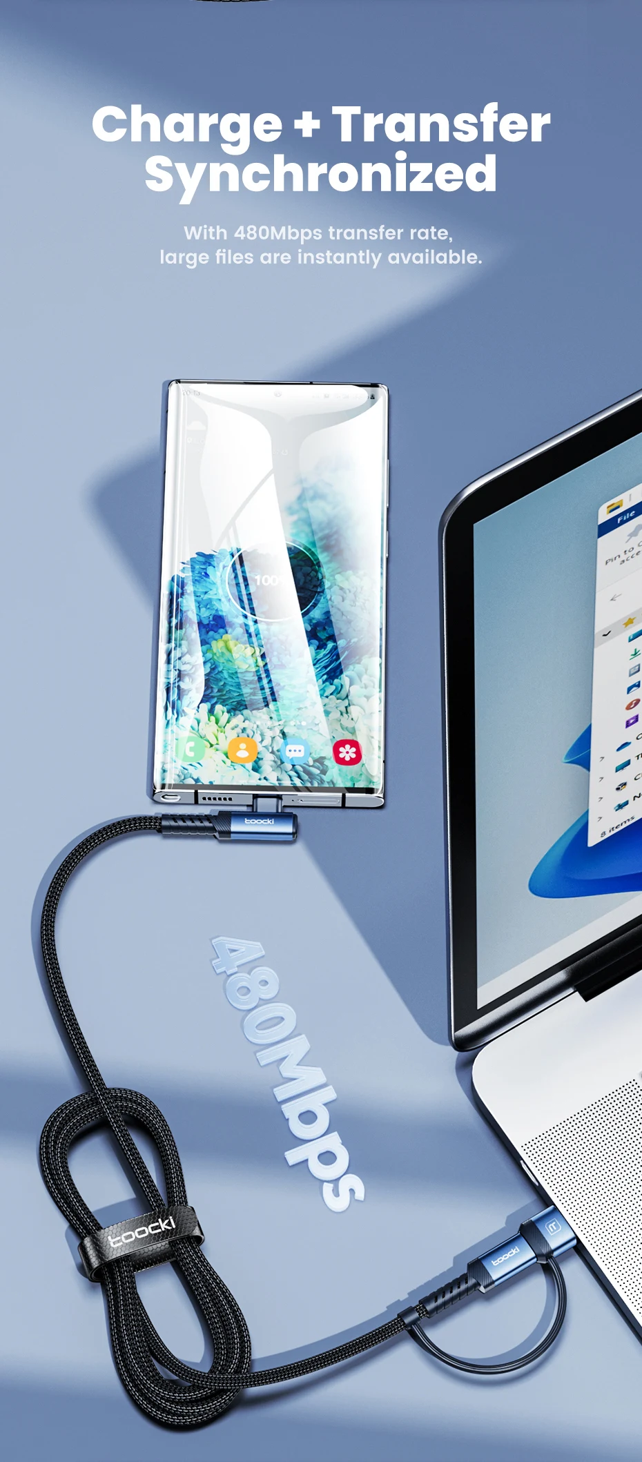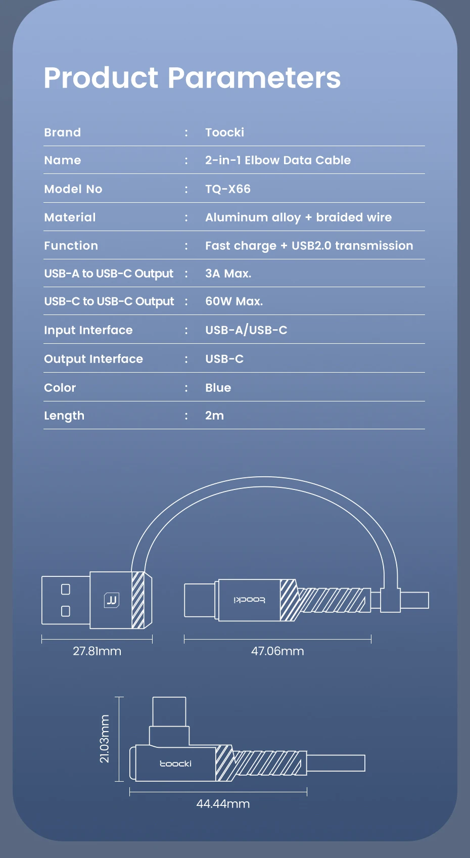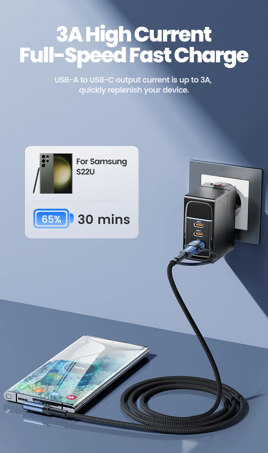 USB Cable]USB-C/USB-A dual connector perfectly adapts to multi-port fast chargers, unlocking more versatility.