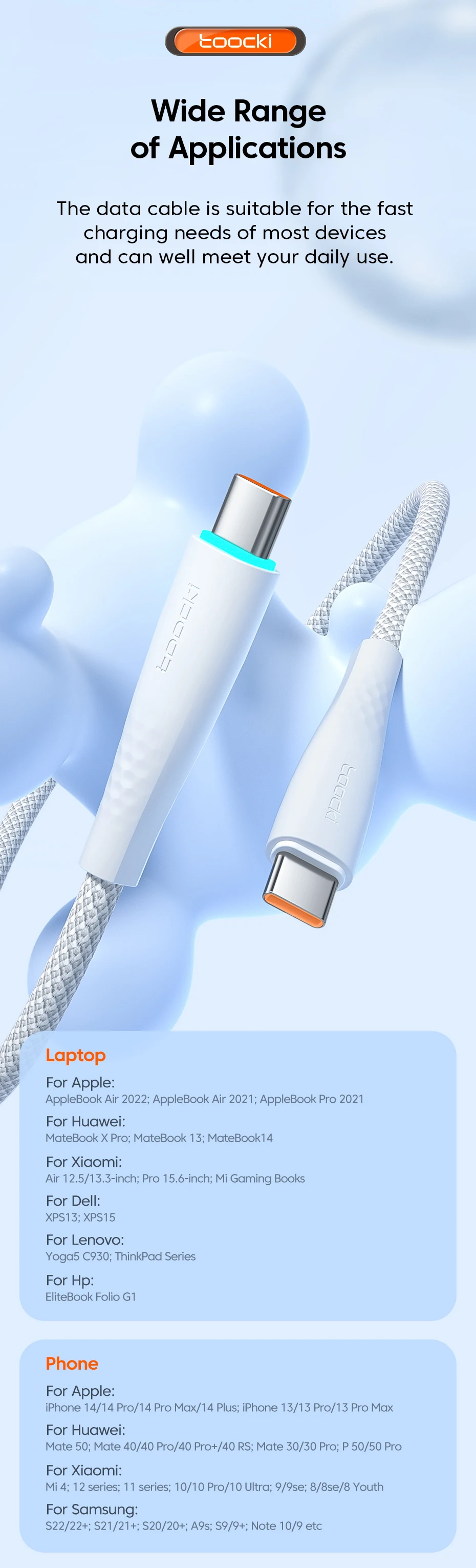 • Tipo-c Conector :El conector Tipo-C en ambos extremos del cable lo hace compatible con una amplia gama de dispositivos.