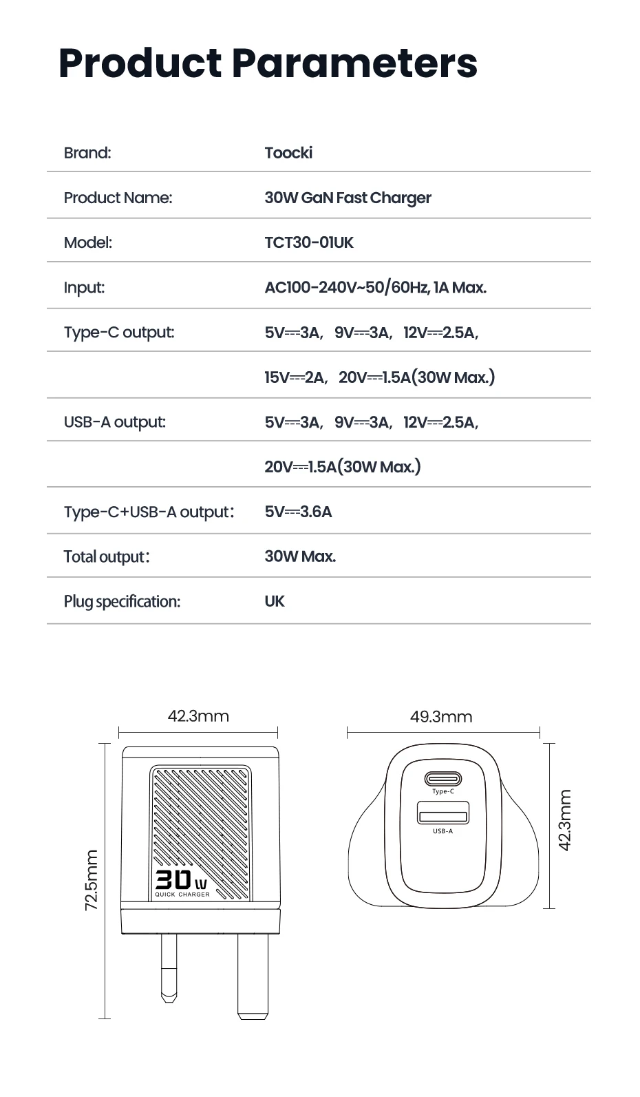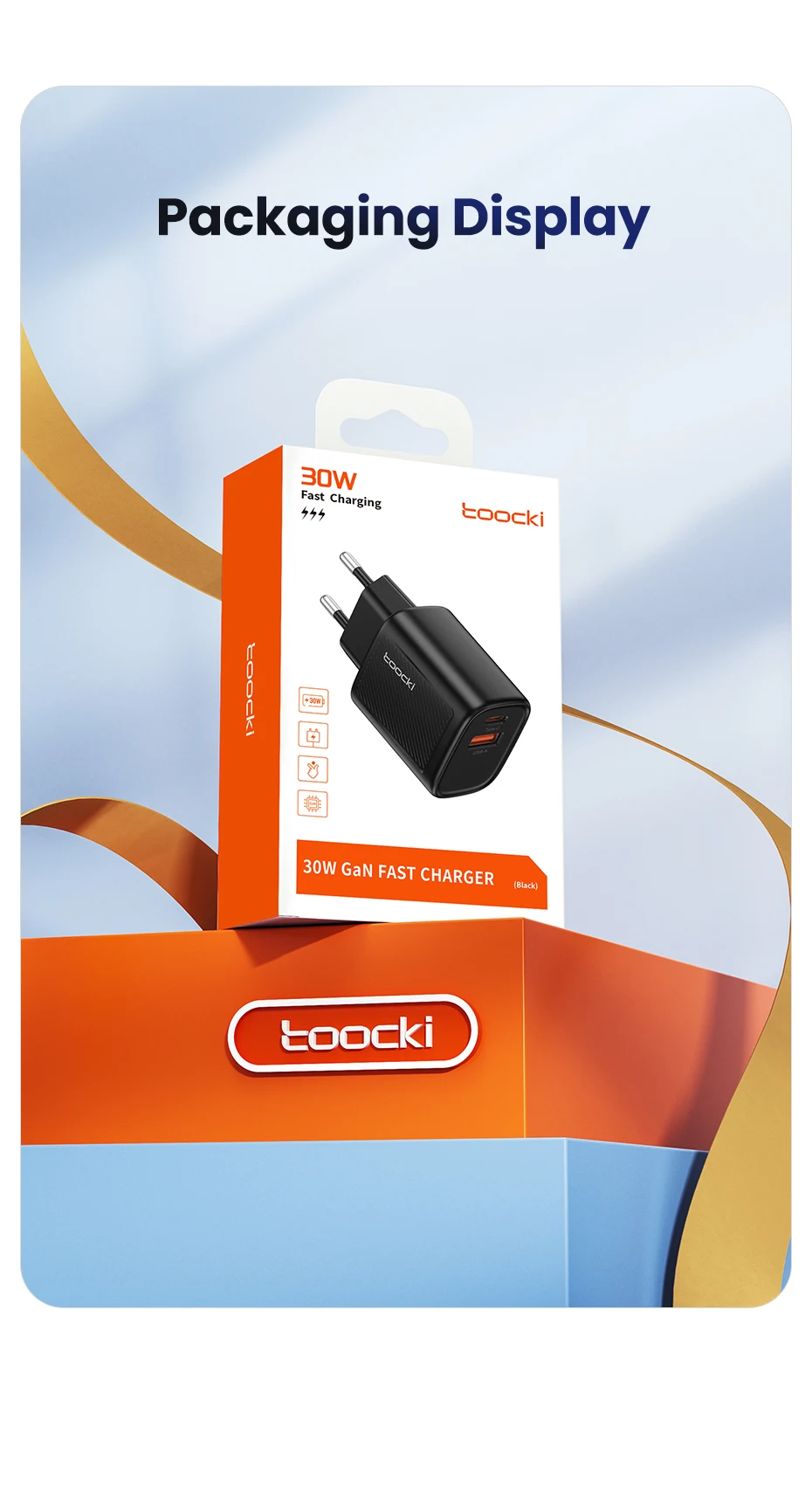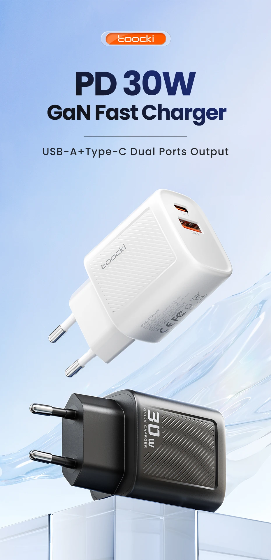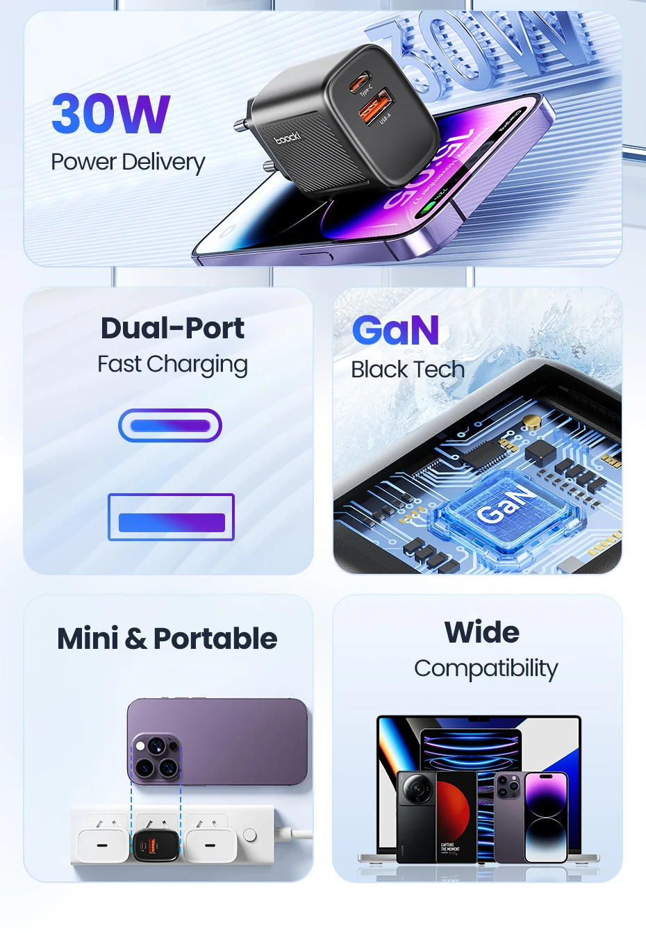 Toocki 30W GaN cargador tipo C PD cargador de carga rápida para iPhone 16 15 Xiaomi 12 13 Samsung S23 S24 cargador de teléfono USB portátil