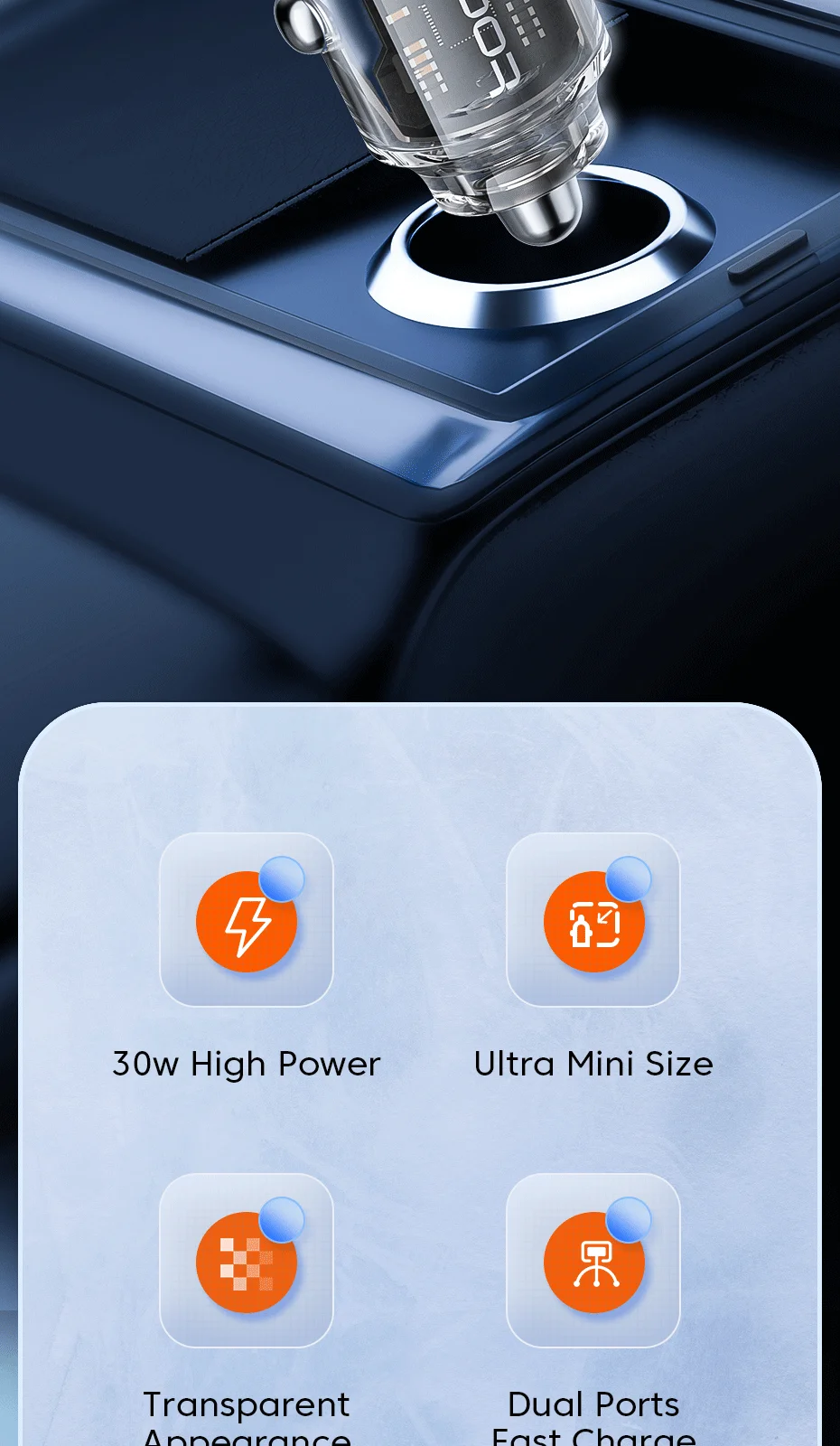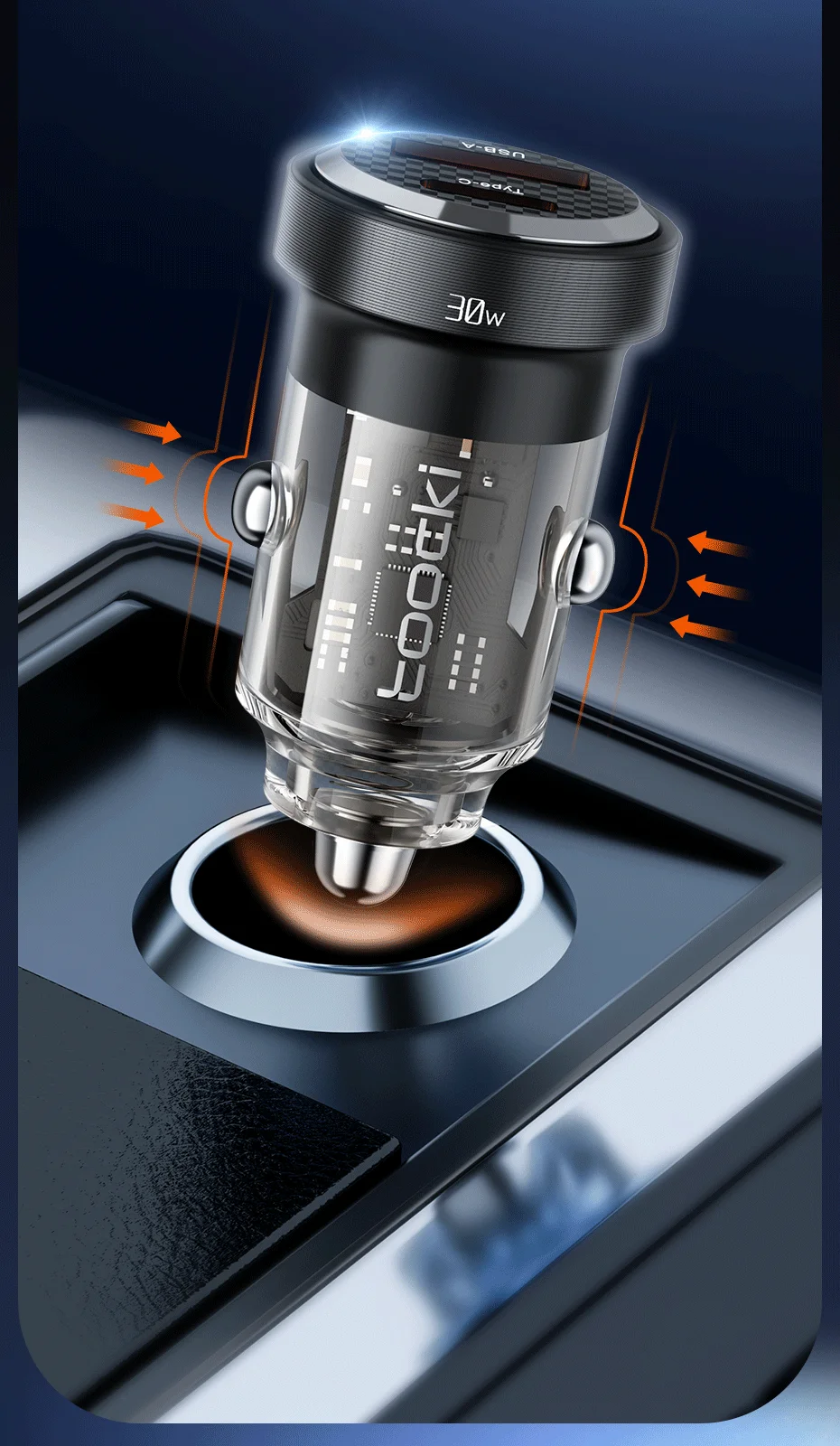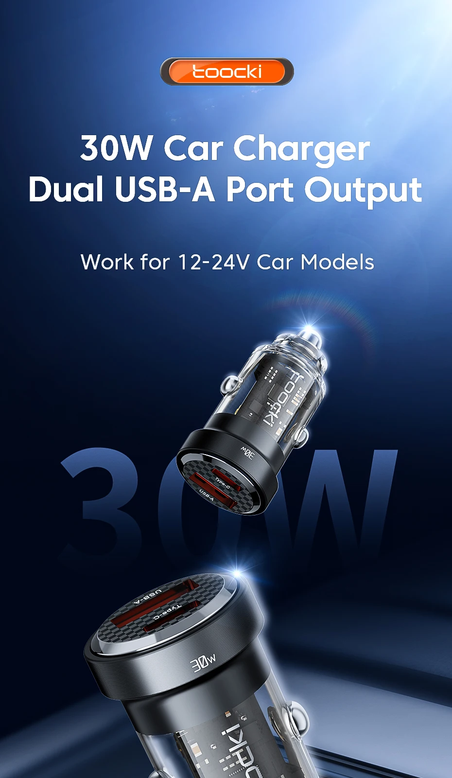 Nombre: Cargador de coche transparente de aleación de aluminio de doble puerto 30W
