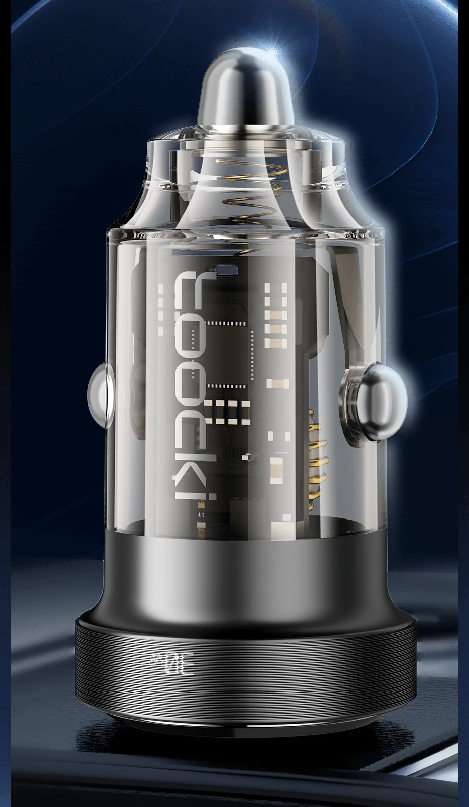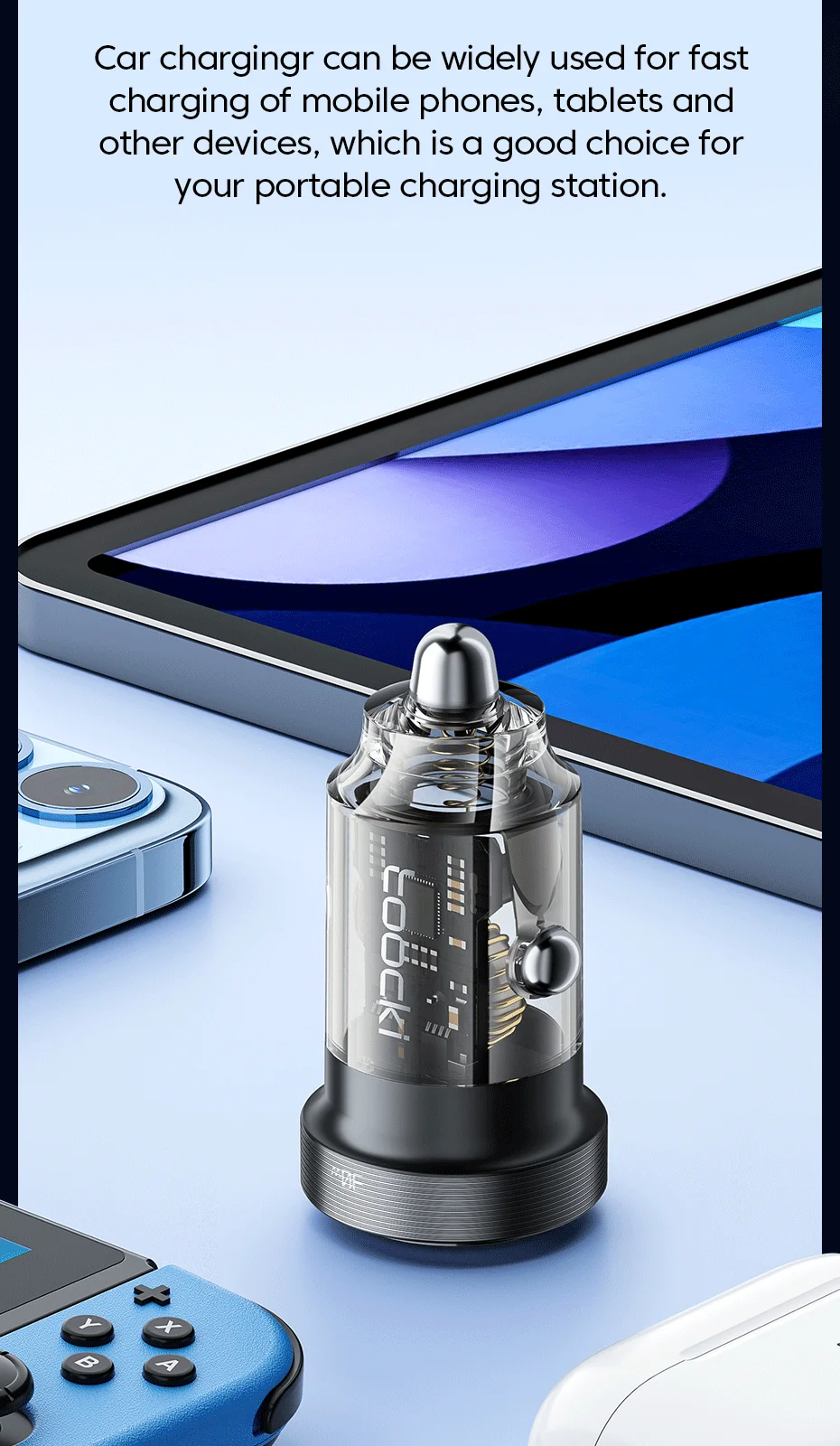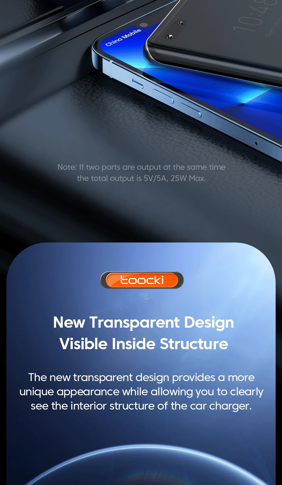 [Nuevo diseño transparente]El nuevo diseño transparente proporciona una apariencia más única al tiempo que le permite ver claramente la estructura interior del cargador del automóvil.
