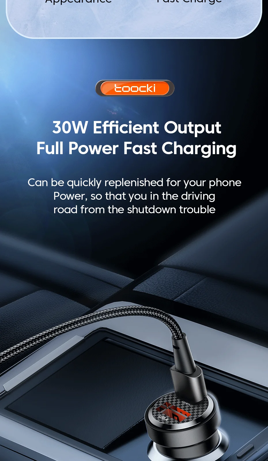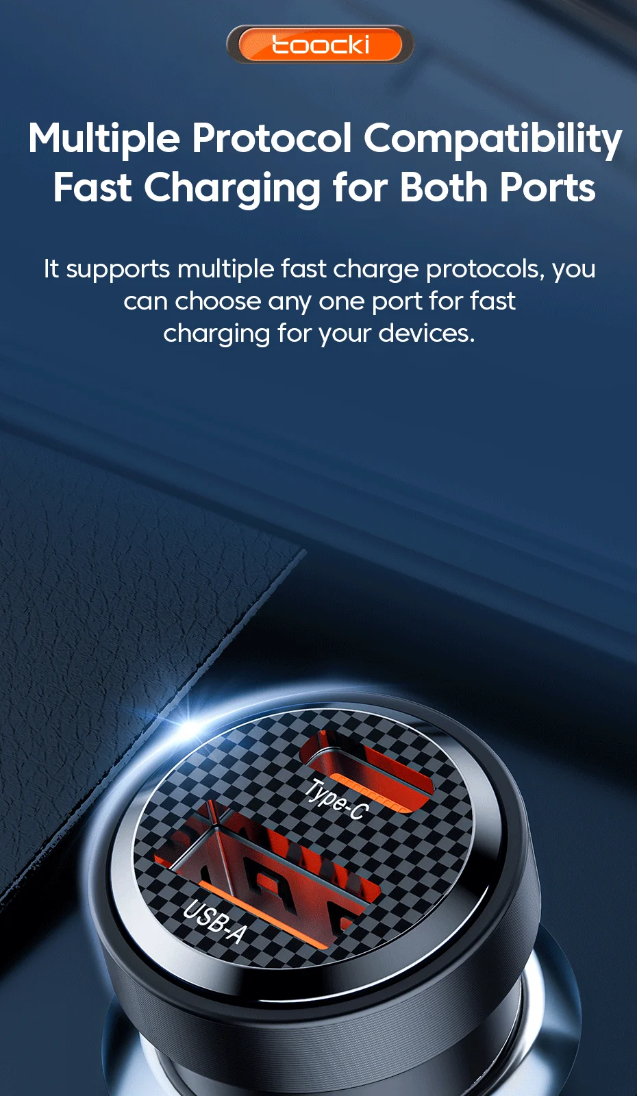 [30W salida eficiente]El cargador de coche es compatible con el Protocolo de carga rápida PD, que puede reponer rápidamente la batería de su teléfono móvil, para que pueda evitar la molestia de apagar mientras conduce.