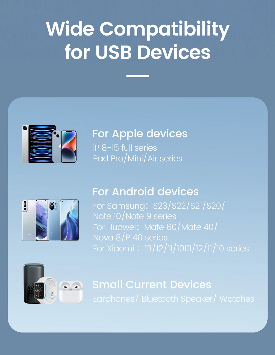 • Compatibilidad amplia :Compatible con una variedad de dispositivos, incluyendo iPhone 15, 14, 13, 12, Samsung Galaxy S23 S22 Xiaomi, lo que lo convierte en un accesorio versátil para todos tus dispositivos.
