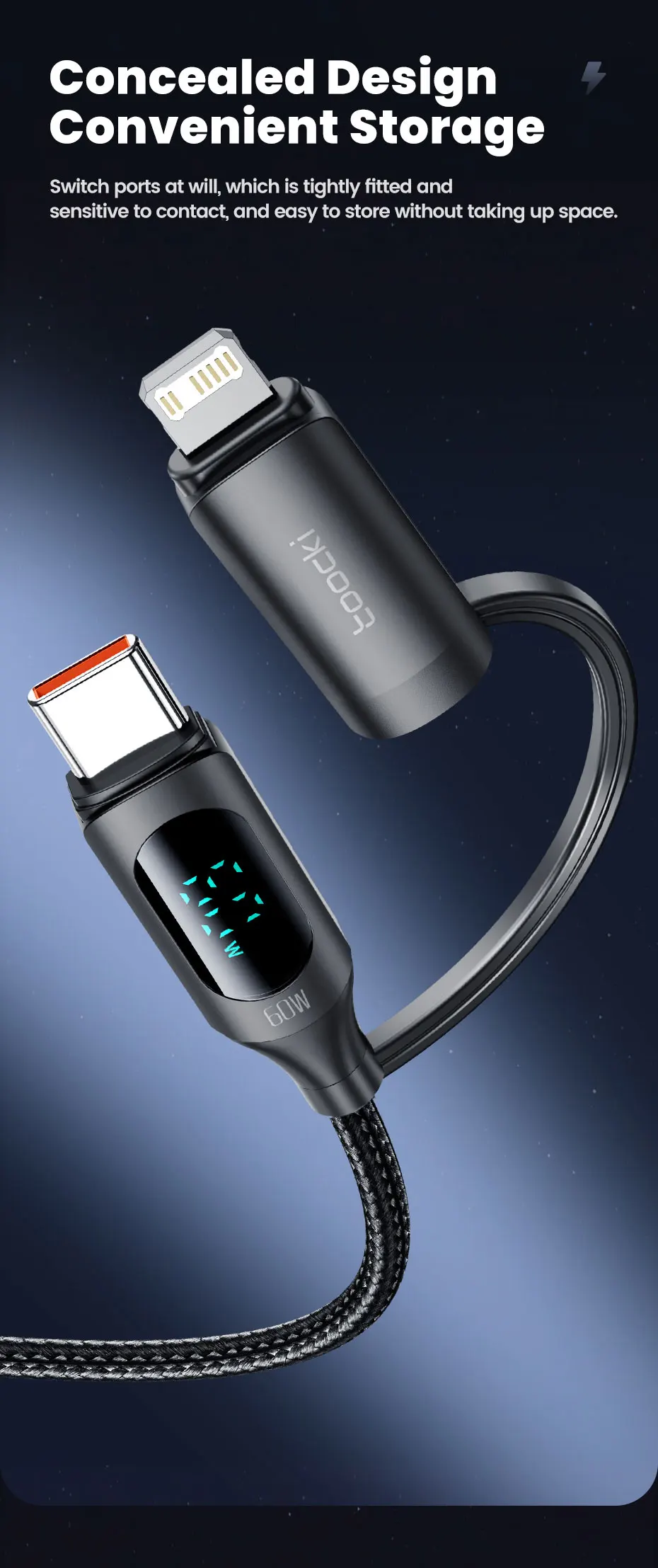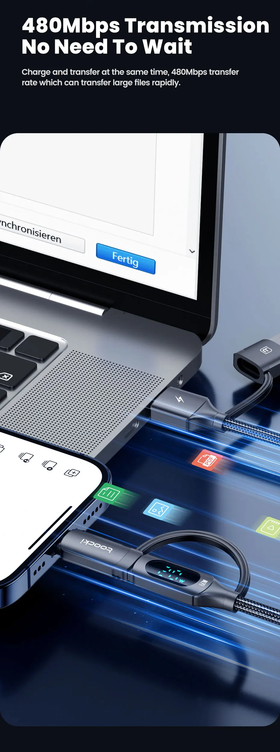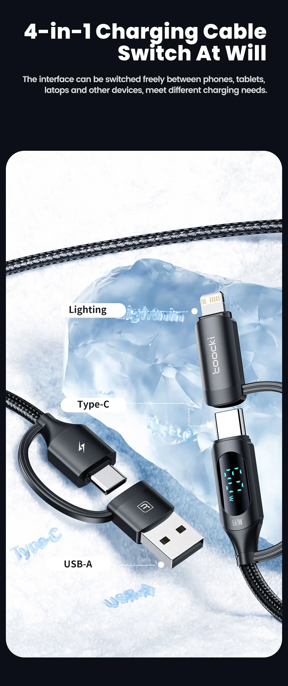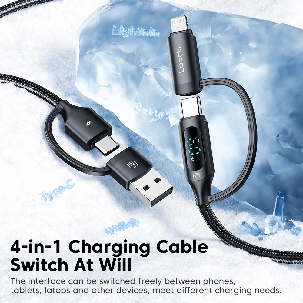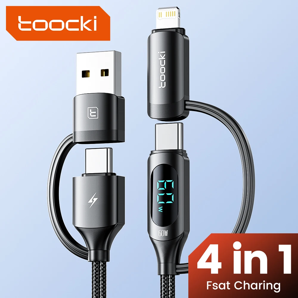 Comprar Toocki 4 en 1 USB A tipo C a USB C pantalla de iluminación Cable PD para iPhone 15 14 cargador de carga rápida Samsung Huawei Cable de fecha