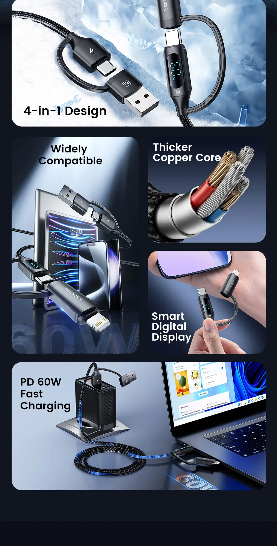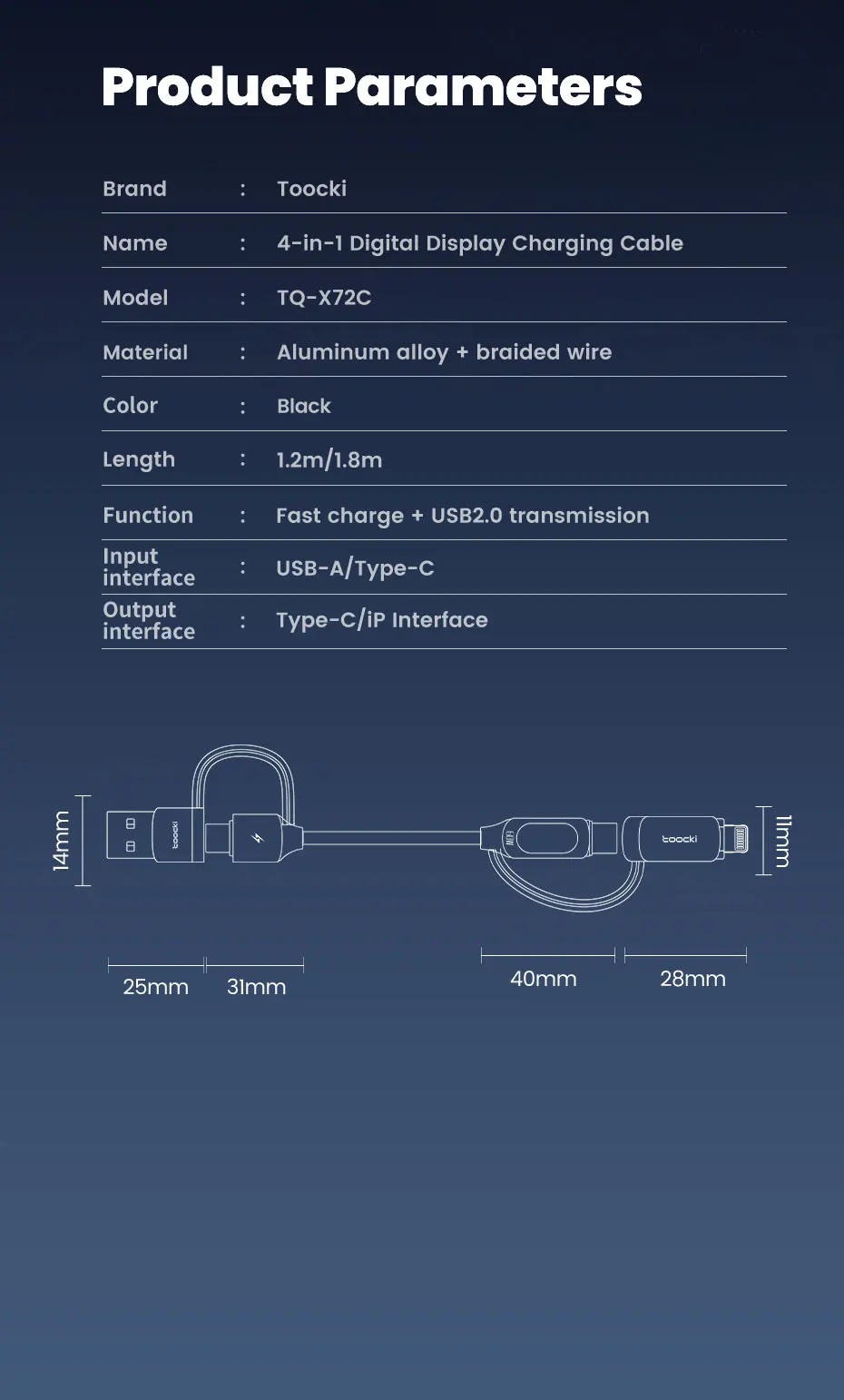 [Cable de carga con pantalla digital 4 en 1]Carga súper rápida