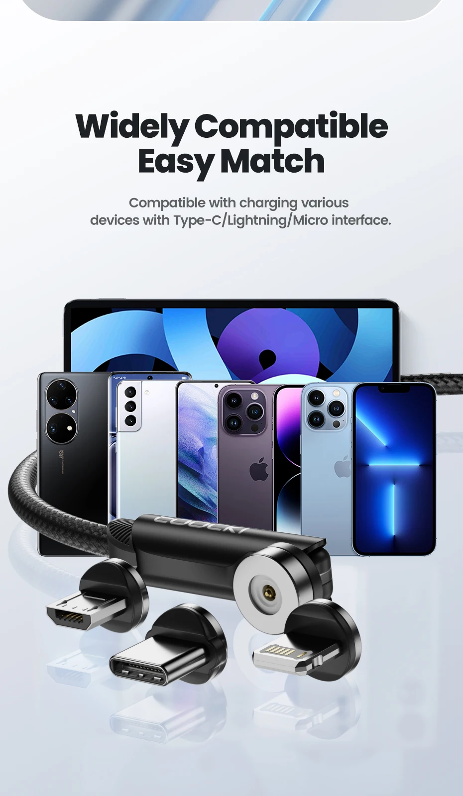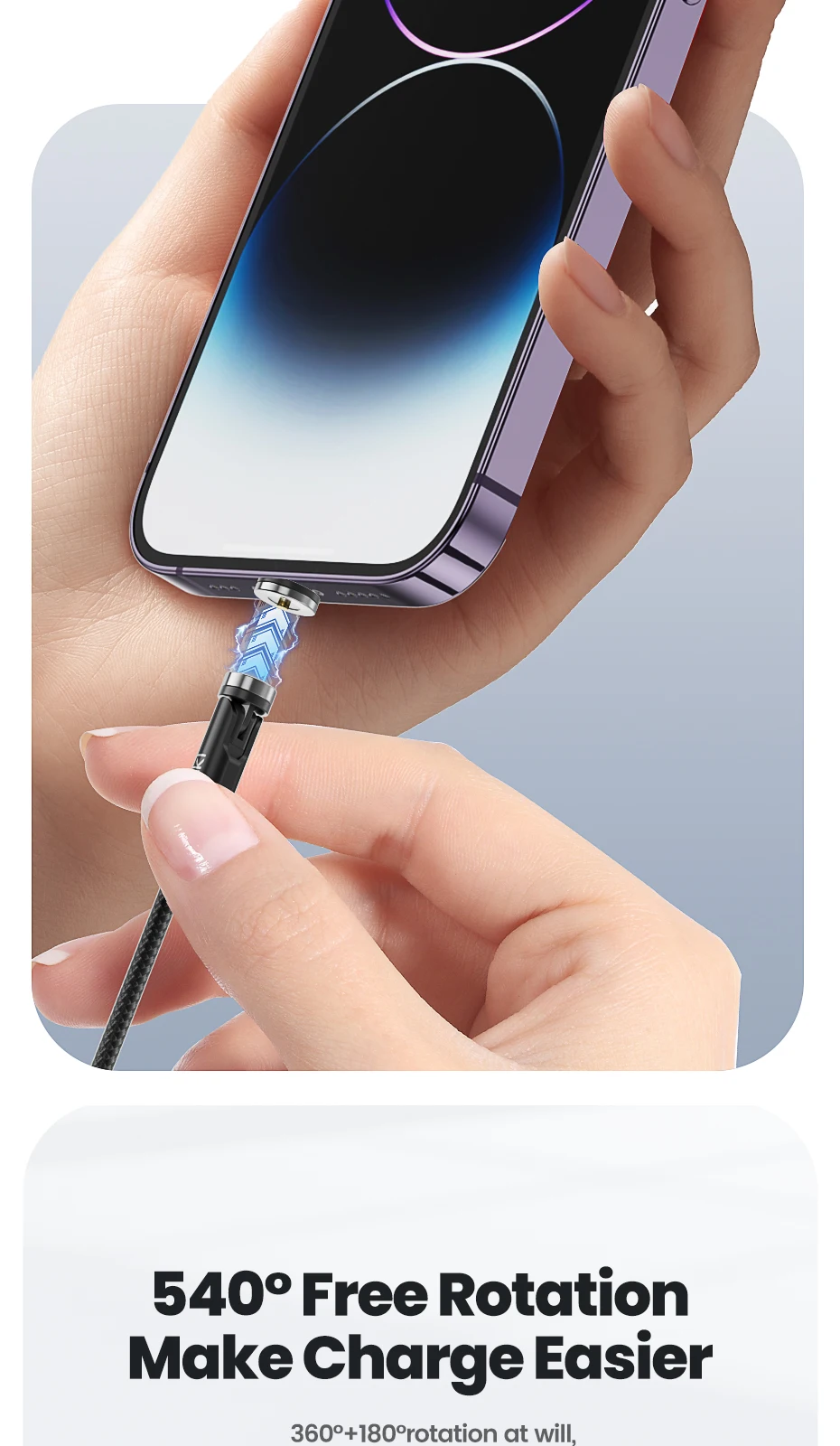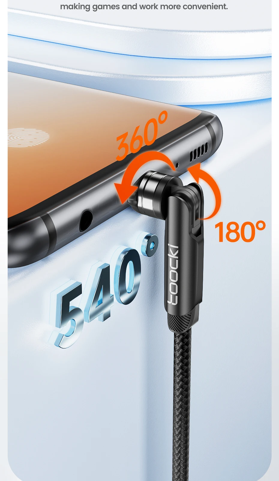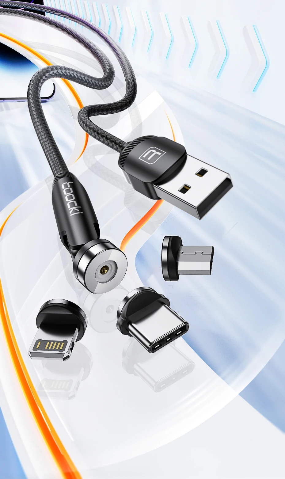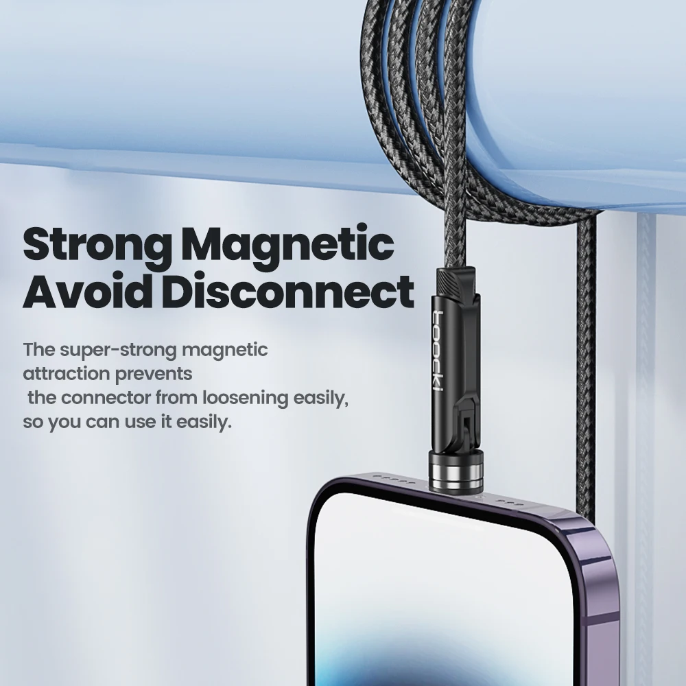 Comprar Toocki 540 Cable Lightning Magenetic giratorio para iPhone Cable Micro USB tipo C de carga rápida para Samsung Xiaomi Huawei