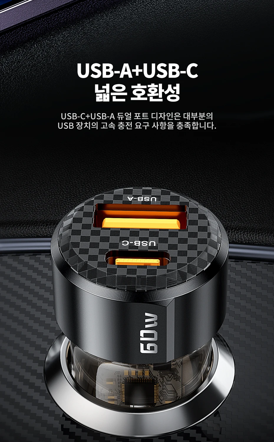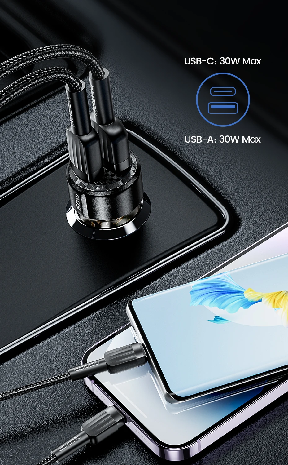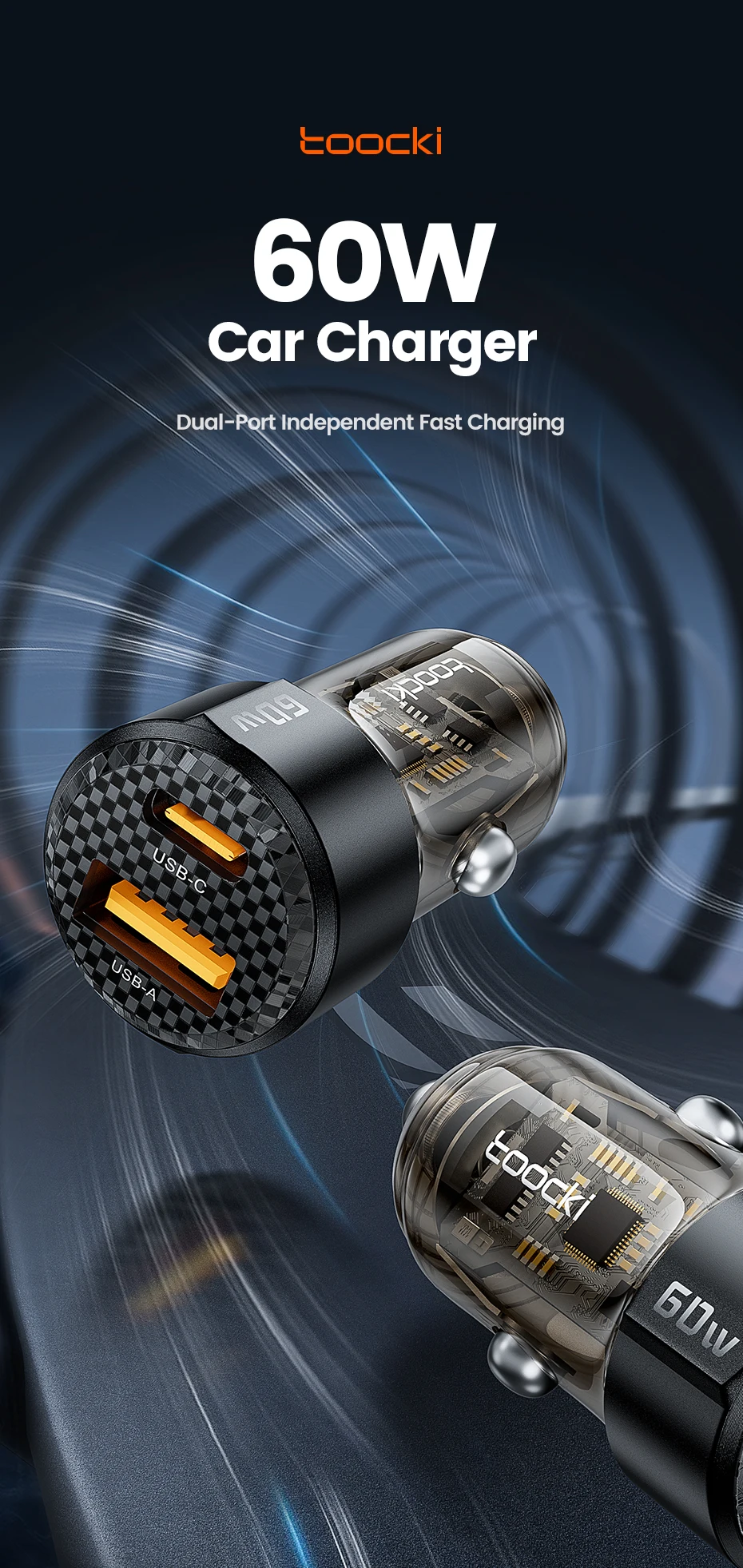 [Carga rápida independiente de doble puerto]Cargador de coche de 60W