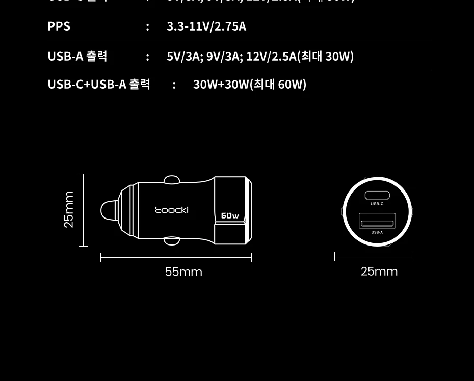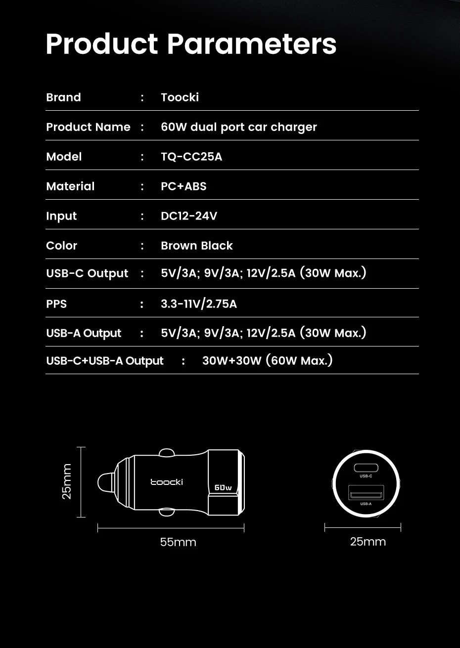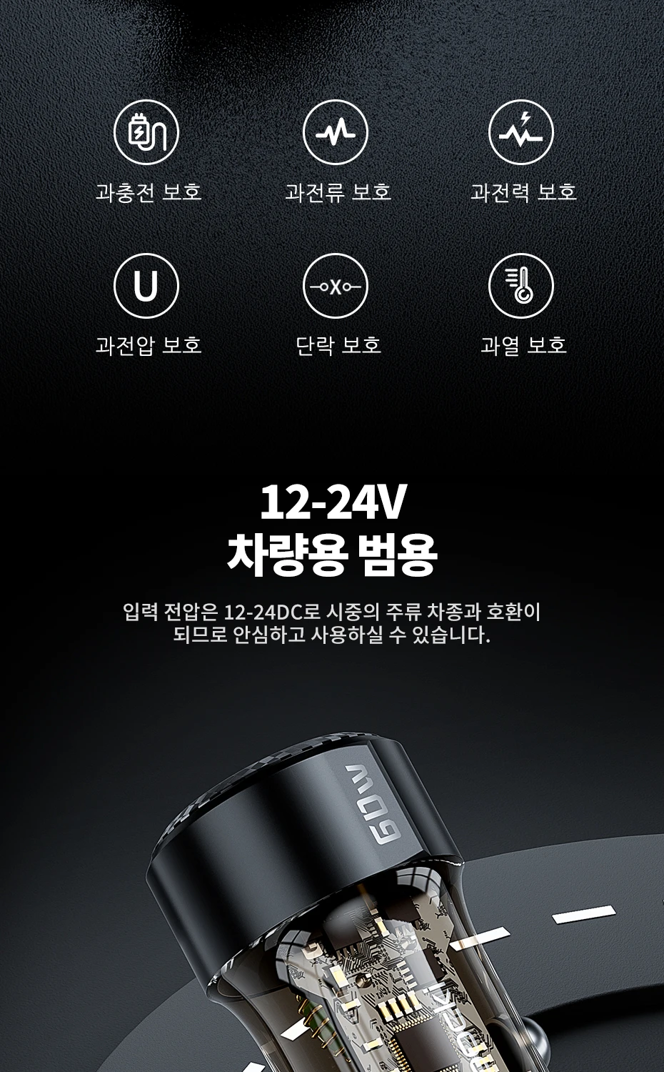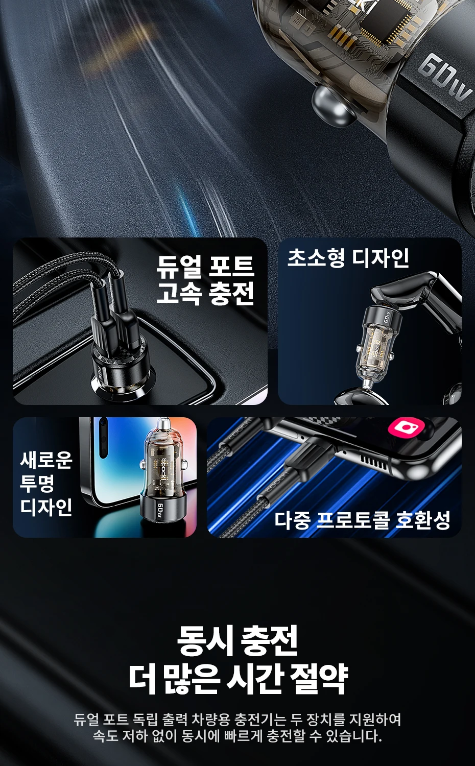 [Carga rápida independiente de doble puerto]Cargador de coche de 60W
